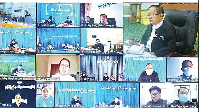 မြန်မာနိုင်ငံ ကလေးအလုပ်သမားပပျောက်ရေးဆိုင်ရာ ဥပဒေရေးရာလုပ်ငန်းကော်မတီ ပဉ္စမအကြိမ် အစည်းအဝေးကို ယနေ့နံနက် ၁၀ နာရီတွင် Hybrid Format ဖြင့် ဥပဒေရေးရာဝန်ကြီးဌာနရှိ မြေညီထပ် အစည်းအဝေးခန်းမ၌ ကျင်းပသည်။