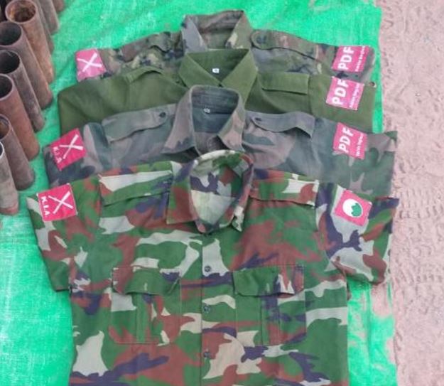 ဆက်လက်၍ လုံခြုံရေးတပ်ဖွဲ့ဝင်များက ဖြစ်စဉ်ဖြစ်ပွားရာနေရာအနီးတစ်ဝိုက်အား အသေးစိတ်စစ်ဆေးခဲ့ရာ လက်လုပ်သေနတ် မျိုးစုံ ၇ လက်၊ လက်လုပ်စိန်ပြောင်း ၄ လက်၊ အမ်-၂၂ ကျည် ၁၀၈ တောင့်၊ ၎င်းကျည်အိမ် ၂ ခု၊ လက်ပစ်ဗုံး ၁ လုံး၊ လက်လုပ် လက်ပစ်ဗုံး ၆၈ လုံး၊ လက်လုပ်မိုင်းမျိုးစုံ ၁၆ လုံးနှင့် မိုင်းနှင့်လက်လုပ်သေနတ် ပြုလုပ်ရာတွင် အသုံးပြုသည့် ဆက်စပ်ပစ္စည်းများ၊ လမ်းလျှောက် စကားပြောစက် ၃ လုံး၊ KIA/PDF လက်မောင်းတံဆိပ်ပါ ပြောက်ကျားယူနီဖောင်း ၃ ထည်၊ PDF လက်မောင်း တံဆိပ်ပါ ယူနီဖောင်း ၁ စုံ နှင့် ဆေးမျိုးစုံ ၂ ဖာ တို့အား သိမ်းဆည်းရမိခဲ့သည်။