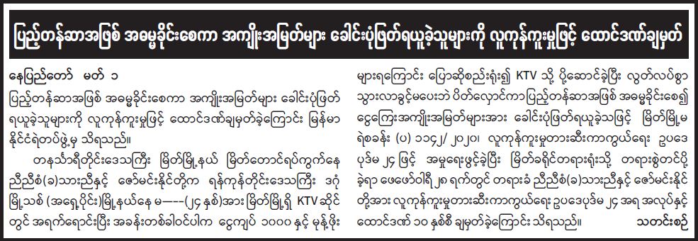 ပြည့်တန်ဆာအဖြစ် အဓမ္မခိုင်းစေကာ အကျိုးအမြတ်များ ခေါင်းပုံဖြတ်ရယူခဲ့သူများကို လူကုန်ကူးမှုဖြင့် ထောင်ဒဏ်ချမှတ် 03/02/2022