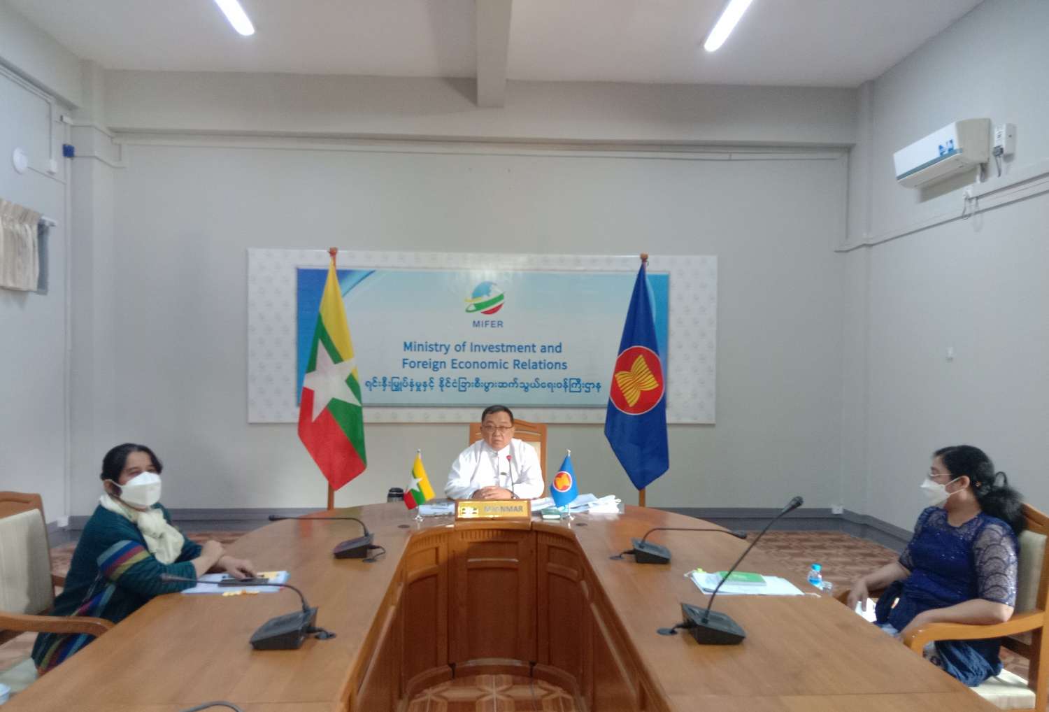 (၄၁)ကြိမ်မြောက် အာဆီယံစီးပွားရေး ပေါင်းစည်းမှုဆိုင်ရာ အဆင့်မြင့်လုပ်ငန်းအဖွဲ့ (41st Meeting of the High-level Task Force on ASEAN Economic Integration -HLTF-EI ) အစည်းအဝေးကို ယနေ့ နံနက်ပိုင်းတွင် ဗီဒီယိုကွန်ဖရင့်စနစ်ဖြင့် ကျင်းပရာ ရင်းနှီးမြှုပ်နှံမှုနှင့် နိုင်ငံခြားစီးပွားဆက်သွယ်ရေးဝန်ကြီးဌာန ဒုတိယဝန်ကြီး၊ မြန်မာနိုင်ငံ၏ အာဆီယံစီးပွားရေး ပေါင်းစည်းမှုဆိုင်ရာ အဆင့်မြင့်လုပ်ငန်းအဖွဲ့ဝင် ဦးသန်းအောင်ကျော်နှင့် တာဝန်ရှိသူများ တက်ရောက်ကြသည်။