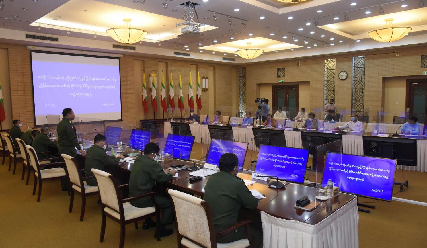 အမျိုးသားစည်းလုံးညီညွတ်ရေးနှင့် ငြိမ်းချမ်းရေးဖော်ဆောင်မှုညှိနှိုင်းရေးကော်မတီနှင့် နိုင်ငံရေးပါတီများအစုအဖွဲ့၏ အလုပ်အဖွဲ့တွေ့ဆုံ ဆွေးနွေးပွဲကို ယနေ့နံနက်ပိုင်းတွင် နေပြည်တော်ရှိ အမျိုးသားစည်းလုံးညီညွတ်ရေးနှင့် ငြိမ်းချမ်းရေးဖော်ဆောင်မှုဗဟိုဌာန အစည်းအဝေး ခန်းမ၌ ကျင်းပသည်။