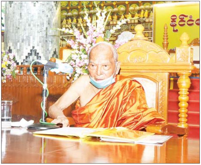 အဋ္ဌမအကြိမ် နိုင်ငံတော်သံဃမဟာနာယကအဖွဲ့ (၄၇) ပါးစုံညီ ဒသမ အစည်းအဝေးသို့ ကြွရောက်တော်မူလာကြသော နိုင်ငံတော် သံဃမဟာနာယက အဖွဲ့ဝင်ဆရာတော် အရှင်မြတ်တို့ဘုရား -