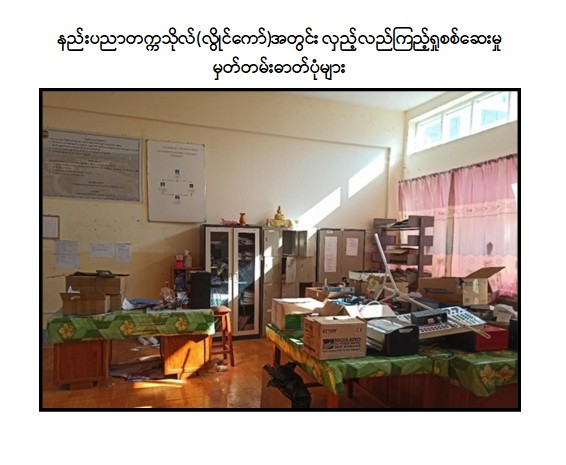 အဆိုပါပစ္စည်းများ ပျောက်ဆုံးပျက်စီးမှုနှင့်ပတ်သက်၍ မတ် ၇ ရက်တွင် လွိုင်ကော်မြို့မရဲစခန်း၌ ပြည်သူပိုင်ပစ္စည်း ကာကွယ်ရေးဥပဒေဖြင့် အမှုဖွင့်လှစ် ထားရှိကြောင်း သိရှိရသည်။