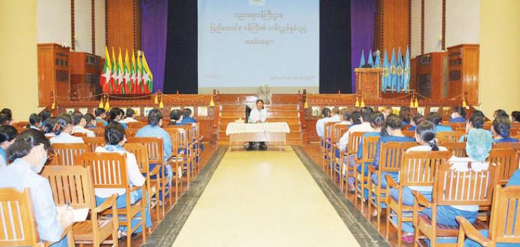ထို့နောက် အဆင့်မြင့်ပညာဦးစီးဌာန ညွှန်ကြားရေးမှူးချုပ် ဒေါက်တာ ဝင်းထွန်းက ရန်ကုန်တက္ကသိုလ် ဥပဓိရုပ်ကောင်းမွန်ရေး၊ ဆရာ ဆရာမများ၏ အရည်အသွေး တိုးတက်စေရေးအတွက် မွမ်းမံသင်တန်းများ ဖွင့်လှစ်ရေးနှင့် ဝန်ထမ်းများ၏ ရာထူးတိုးကိစ္စရပ်များ၊ သက်ဆိုင်ရာ ပညာတော်သင်များ သွားရောက်ရာတွင် လိုက်နာရန် စည်းမျဉ်း စည်းကမ်းများကို ရှင်းလင်းပြောကြားသည်။