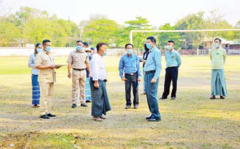 ရှေးဦးစွာ ပြည်ထောင်စုဝန်ကြီးနှင့်အဖွဲ့သည် မန္တလေးတိုင်းဒေသကြီး ကျောက်ပန်းတောင်းမြို့နယ် ဘောလုံးအားကစားကွင်းကို ကြည့်ရှုစစ်ဆေးပြီး ဘောလုံးအားကစားကွင်း စိမ်းလန်းစိုပြည်စေရေး၊ ဆိုလာစနစ်ဖြင့် ရေရရှိရေး၊ ဘောလုံးကွင်းအမြဲ သန့်ရှင်းသာယာ လှပမှုရှိစေရေး ဆောင်ရွက်ထားရန်၊ ကွင်းပတ်လည်တွင် ဈေးရောင်းချသူများမရှိစေရေး ကြီးကြပ်ဆောင်ရွက်သွားရန်နှင့် ဘောလုံးကွင်း ပွဲကြည့်စင်နှင့် အုတ်နံရံတံတိုင်းများ ရေရှည်တည်တံ့ ခိုင်မြဲစေရေး ထိန်းသိမ်းစောင့်ရှောက်သွားရန် မှာကြားသည်။