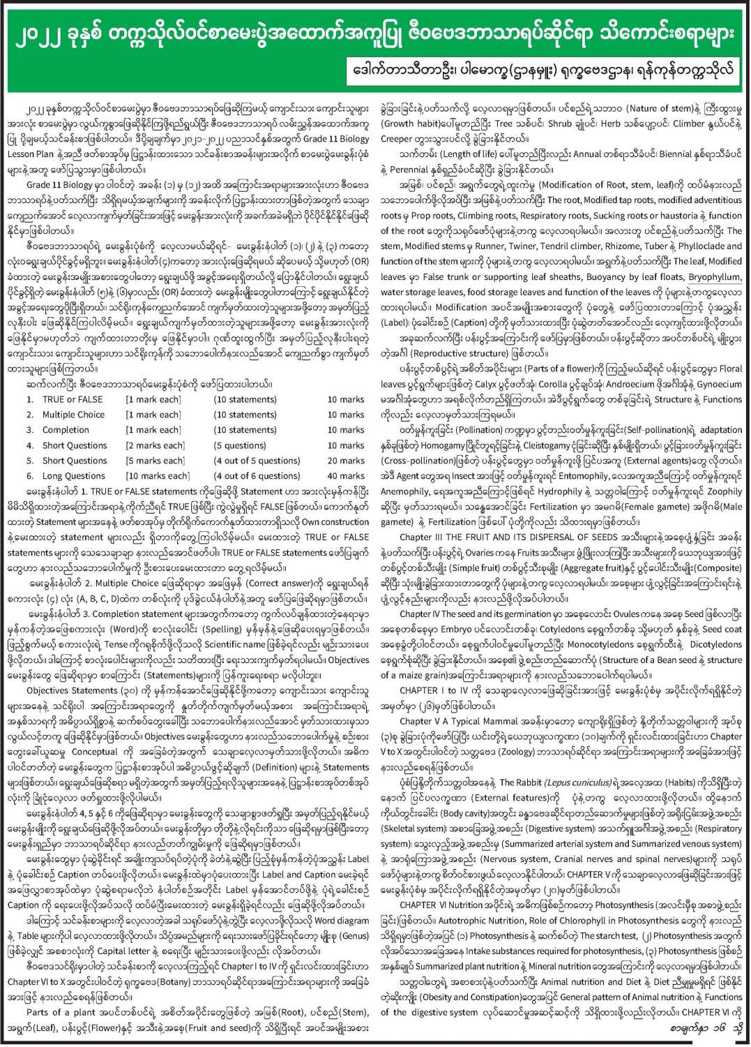 ၂၀၂၀ ခုနှစ် တက္ကသိုလ်စာမေးပွဲအထောက်ကူပြု ဇီဝဘာသာရပ်ဆိုင်ရာ သိကောင်းစရာများ
