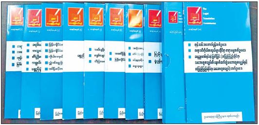 စာအုပ်အမှတ်(၁)တွင် တရား လွှတ်တော်ရှေ့နေများ ကောင်စီ အက်ဥပဒေ (The Bar Council Act)၊ ကာလစည်းကမ်းသတ် အက်ဥပဒေ (The Limitation Act)၊ ကုန်စည်ရောင်းချခြင်း အက်ဥပဒေ (The Sale of Gods Act)၊ မြစ်ကျဉ်းသွားလာရေး အက်ဥပဒေ (The Defile Traffic Act)၊ စာအုပ် အမှတ်(၂)တွင် ခရစ်ယာန်ထိမ်းမြားခြင်းဆိုင်ရာ အက်ဥပဒေ (The Christian Marriage Act)၊ အထူးထိမ်းမြားခြင်းဆိုင်ရာ အက်ဥပဒေ (The Special Marriage Act)၊ ကိတ္တိမ မွေးစားခြင်း မှတ်ပုံတင်အက်ဥပဒေ (The Registration of Kittima Adoptions Act)၊ အရွယ်ရောက်ခြင်းအက်ဥပဒေ (The Majority Act)၊ ပစ္စည်းခွဲဝေခြင်းဆိုင်ရာ အက်ဥပဒေ (The Partition Act) စာအုပ်အမှတ်(၃)တွင် မြန်မာနိုင်ငံအစိုးရ လျှို့ဝှက်ချက်အက်ဥပဒေ (The Myanmar Official Secrets Act), မြန်မာနိုင်ငံ လေကြောင်းသယ်ယူပို့ဆောင်ရေးအက်ဥပဒေ (The Myanmar |Carriage by Air Act)၊ ကိုယ်စားလှယ်လွှဲအပ်ရေး အက်ဥပဒေ(The Power of Attorney Act)၊ လွှဲအပ်ပစ္စည်းစီမံရေးဝန် အက်ဥပဒေ (The Official Trustees Act)၊ အမိန့်ဆင့်စာခအက်ဥပဒေ (The Process Fees Act)၊ စာအုပ်အမှတ်(၄) တွင် ပစ္စည်းလွှဲပြောင်း ရေးအက်ဥပဒေ (The Transfer of Property Act)၊ စာအုပ်အမှတ် (၅)တွင် သယ်ယူပို့ဆောင်သူများ အက်ဥပဒေ (The Carriers Act)၊ ကျမ်းသစ္စာ အက်ဥပဒေ(The Oaths Act)၊ သီးခြားသက်သာခွင့် အက်ဥပဒေ (The Specific Relief Act)၊ စာအုပ် အမှတ်(၆)တွင် အထက် မြန်မာနိုင်ငံမြေနှင့်အခွန် စည်းမျဉ်း (The Upper Myanmar Land and Revenue Regulations)၊ မြန်မာနိုင်ငံ လင်မယားကွာရှင်းရေး အက်ဥပဒေ (The Myanmar Divorce Act)ı စာအုပ် အမှတ်(၇)တွင် အတိုးခံစားခွင့် အက်ဥပဒေ (The Interest Act) ထိမ်းမြားပြီး အမျိုးသမီးများ၏ ပစ္စည်းခန်းအက်ဥပဒေ (The Married Women’s Property Act)၊ ဟိန္ဒူမုဆိုးမများ ထပ်မံ ထိမ်းမြားခြင်း အက်ဥပဒေ (The Hindu Widow's Re-Marriage Act)၊ ရှေ့နေများ အက်ဥပဒေ (The Legal Practitioners Act)၊ စာအုပ်အမှတ်(၈)တွင် ပြည်သူပိုင် ပစ္စည်းကာကွယ်ရေး အက်ဥပဒေ (The Public Property Protection Act)၊ ရုံးခွန် အက်ဥပဒေ (The Court Fees Act)၊ စာအုပ်အမှတ် (၉)တွင် ရာဇသတ်ကြီး (The Penal Code)၊ စာအုပ်အမှတ် (၁၀)တွင် ကုန်းလမ်းအကောက်ခွန် အက်ဥပဒေ (The Land Customs Act)၊ တရားဝင်ကိုယ်စားလှယ်များဆိုင်ရာ တရားမမှု အက်ဥပဒေ (The Legal Representatives Suits Act)၊ အနုညာတ စီရင်ဆုံးဖြတ်ခြင်း (အပြည်ပြည်ဆိုင်ရာ သဘောတူ စာချုပ်၏ နောက်ဆက်တွဲ သဘောတူစာချုပ်နှင့် အပြည်ပြည်ဆိုင်ရာ သဘောတူစာချုပ်) အက်ဥပဒေ (The Arbitration (Protocol and Convention Act)) တို့ပါဝင်ပြီး အဆိုပါစာအုပ်များကို တစ်အုပ်ချင်းဖြစ်စေ၊ အမှတ်(၁)မှ (၁၀) အထိ အတွဲလိုက်ဖြစ်စေ မှာယူရရှိနိုင်ကြောင်း သတင်းရရှိသည်။