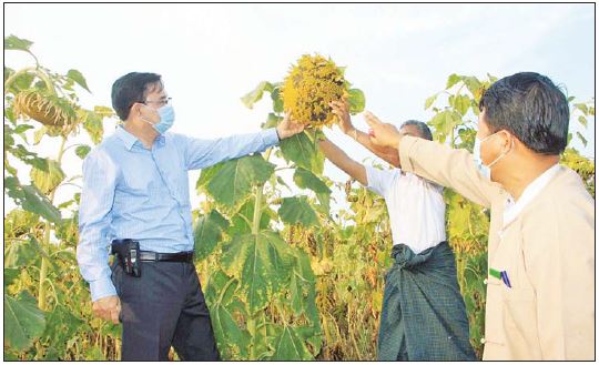 ဆက်လက်၍ တိုင်းဒေသကြီး ဝန်ကြီးချုပ်သည် ရေတာရှည် မြို့နယ် အထွေထွေအုပ်ချုပ်ရေး ဦးစီးဌာနရုံးသို့ ရောက်ရှိရာမြို့နယ် စီမံအုပ်ချုပ်ရေးအဖွဲ့ ဥက္ကဋ္ဌ၏ ဆီထွက်သီးနှံ နေကြာတိုးချဲ့ စိုက်ပျိုးမည့် စီမံချက်ရှင်းလင်း တင်ပြခဲ့မှုအပေါ် တိုင်းဒေသကြီး ဝန်ကြီးချုပ်က လိုအပ်သည်များ မှာကြားပြီး တောင်ငူမြို့နယ် ဒိုးအင်းကျေးရွာအုပ်စု မဝါကျေးရွာ စစ်တောင်မြစ်ကမ်း တစ်လျှောက် ဆီထွက်သီးနှံ ဆင်းရွှေကြာ(၂) နေကြာသီးသန့် ၁၀၄ ဧက အောင်မြင်ဖြစ်ထွန်းနေမှုကို ကြည့်ရှုခဲ့ကြောင်း သိရသည်။