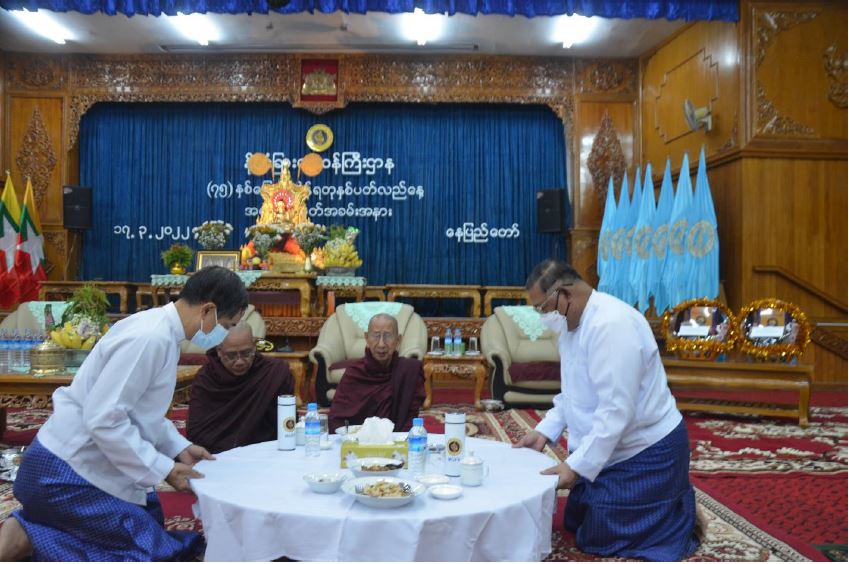 နိုင်ငံခြားရေးဝန်ကြီးဌာန၊ (၇၅)နှစ်မြောက် စိန်ရတုနှစ်ပတ်လည်နေ့ အထိမ်းအမှတ်အဖြစ် ယနေ့ နံနက်ပိုင်းတွင် နိုင်ငံခြားရေးဝန်ကြီးဌာန၊ လောကနတ်ခန်းမ၌ ပြည်ထောင်စုဝန်ကြီး ဦးဝဏ္ဏမောင်လွင်နှင့် ဦးကိုကိုလှိုင်တို့ ကြီးမှူး၍ ဝန်ထမ်းများက ပျဉ်းမနားမြို့၊ ရတနာမှန်ကျောင်း ဆရာတော် သဒ္ဓမ္မဇောတိကဓဇ ဘဒ္ဒန္တဝိလာသ ဦးဆောင်သော သံဃာတော်(၅)ပါးအား အရုဏ်ဆွမ်း ဆပ်ကပ်လှူဒါန်းကြသည်။