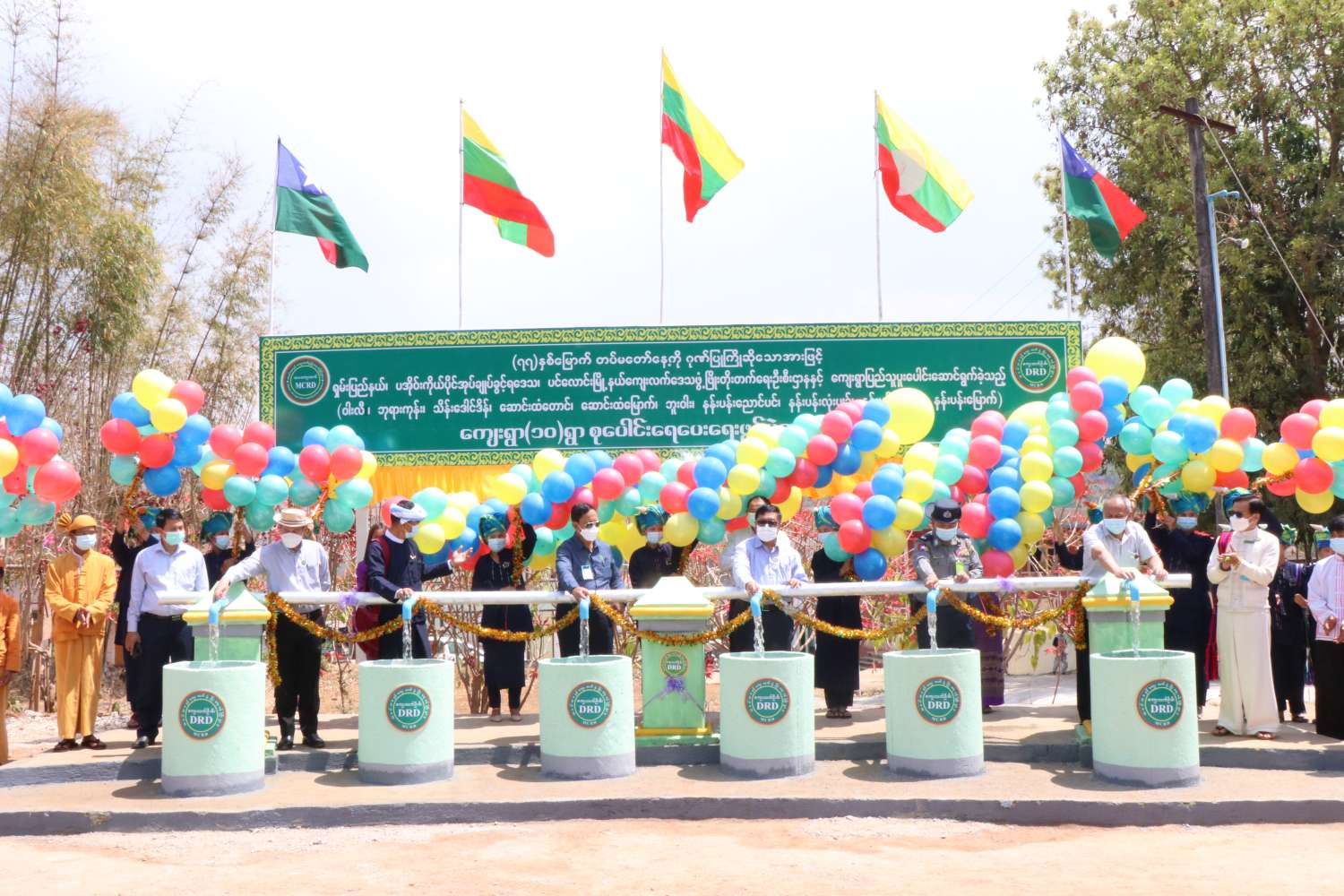 ဆက်လက်၍ ကျေးရွာ(၁၀)ရွာစုပေါင်းရေပေးရေး ရေထိန်းဘားများကို ပြည်ထောင်စုဝန်ကြီး ဦးလှမိုး၊ ရှမ်းပြည်နယ် ဝန်ကြီးချုပ် ဒေါက်တာကျော်ထွန်း၊ ပြည်နယ်လမ်းပန်းဆက်သွယ်ရေး ဝန်ကြီး ရဲမှူးချုပ် တင်ကိုကို၊ တိုင်းရင်းသားရေးရာဝန်ကြီး ဦးအောင်ကြည်ဝင်း၊ ပအိုးဝ်ကိုယ်ပိုင် အုပ်ချုပ်ခွင့်ရဒေသ စီမံအုပ်ချုပ်ရေးအဖွဲ့ဥက္ကဋ္ဌ ဦးခွန်ရဲထွေးနှင့် သမဝါယမနှင့် ကျေးလက် ဖွံ့ဖြိုးရေး ဝန်ကြီးဌာန အမြဲတမ်းအတွင်းဝန် ဦးခန့်ဇော်တို့က ဖွင့်လှစ်ပေးသည်။