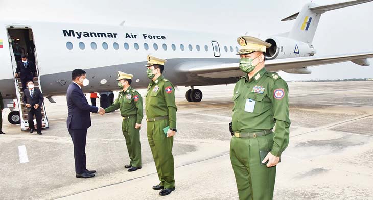 အဆိုပါ မြန်မာ့တပ်မတော်ကိုယ်စားလှယ်အဖွဲ့သည် ညနေ ၆ နာရီတွင် နေပြည်တော်၊ တပ်မတော်လေဆိပ်သို့ ပြန်လည်ရောက်ရှိကြရာ ကာကွယ်ရေးဦးစီးချုပ်ရုံး (ကြည်း)မှ ဒုတိယ ဗိုလ်ချုပ်ကြီး သန်းထွန်းဦး၊ စစ်ရေးချုပ် ဒုတိယဗိုလ်ချုပ်ကြီး မျိုးဇော်သိန်း၊ နေပြည်တော်တိုင်း စစ်ဌာနချုပ်တိုင်းမှူးနှင့် တာဝန်ရှိသူများက လေဆိပ်တွင် ကြိုဆိုနှုတ်ဆက်ခဲ့ကြကြောင်း သတင်းရရှိသည်။