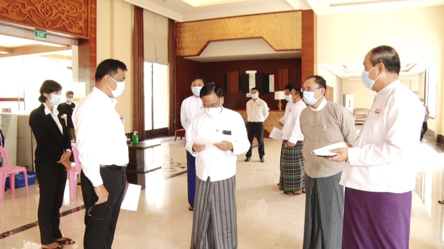 ဟိုတယ်နှင့်ခရီးသွားလာရေးဝန်ကြီးဌာန ပြည်ထောင်စုဝန်ကြီး ဒေါက်တာဌေးအောင်သည် ယနေ့နံနက်ပိုင်းတွင် နေပြည်တော်ရှိ နိုင်ငံတော်ဧည့်ဂေဟာနှင့် ဟိုတယ်များသို့ သွားရောက်ကာ နေပြည်တော်ဟိုတယ်လုပ်ငန်းရှင်များအသင်း အလုပ်အမှုဆောင်၊ ဟိုတယ်များမှ အထွေထွေမန်နေဂျာများ၊ တာဝန်ခံများနှင့် တွေ့ဆုံသည်။