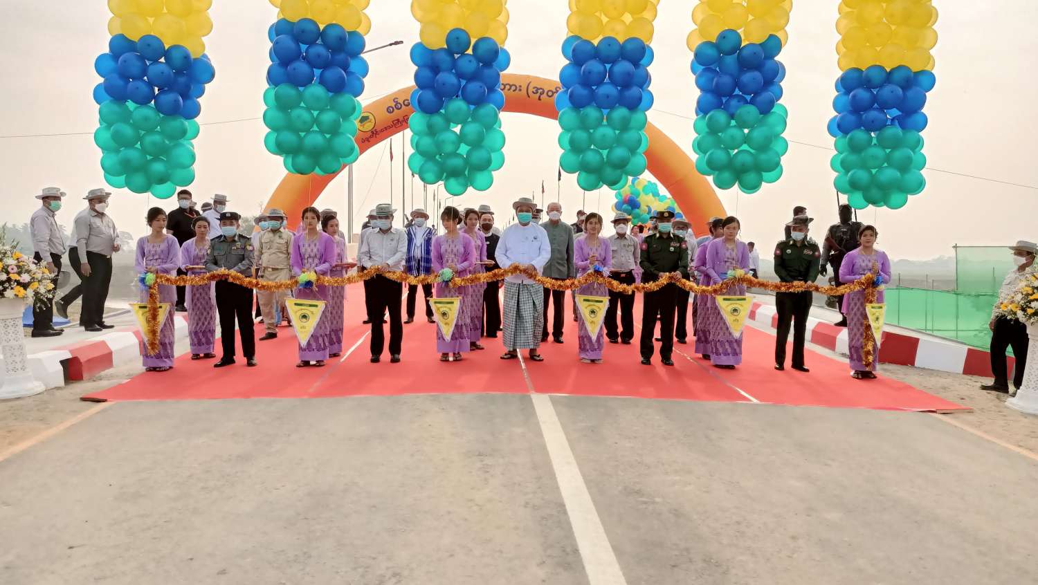 အခမ်းအနားသို့ နိုင်ငံတော်စီမံအုပ်ချုပ်ရေးကောင်စီဝင်၊ Jeng Phang နော်တောင်၊ ဦးရွှေကြိမ်း၊ ဆောက်လုပ်ရေးဝန်ကြီးဌာန ပြည်ထောင်စုဝန်ကြီး ဦးရွှေလေး၊ ပဲခူးတိုင်းဒေသကြီး ဝန်ကြီးချုပ် ဦးမျိုးဆွေဝင်း၊ တောင်ပိုင်းတိုင်းစစ်ဌာနချုပ် တိုင်းမှူး ဗိုလ်မှူးချုပ် ထိန်ဝင်း၊ ပဲခူးတိုင်းဒေသကြီး အစိုးရအဖွဲ့ဝင် ဝန်ကြီးများ၊ စစ်ဘက်၊ နယ်ဘက်မှ ပုဂ္ဂိုလ်များ၊ တိုင်း / ခရိုင် / မြို့နယ်အဆင့် ဌာနဆိုင်ရာတာဝန်ရှိသူများ၊ လူမှုရေးအသင်းအဖွဲ့များမှ ပုဂ္ဂိုလ်များ၊ ရပ်မိ / ရပ်ဖများ၊ ဒေသခံပြည်သူများ၊ ဖိတ်ကြားထားသည့် ဧည့်သည်များ တက်ရောက်ကြသည်။