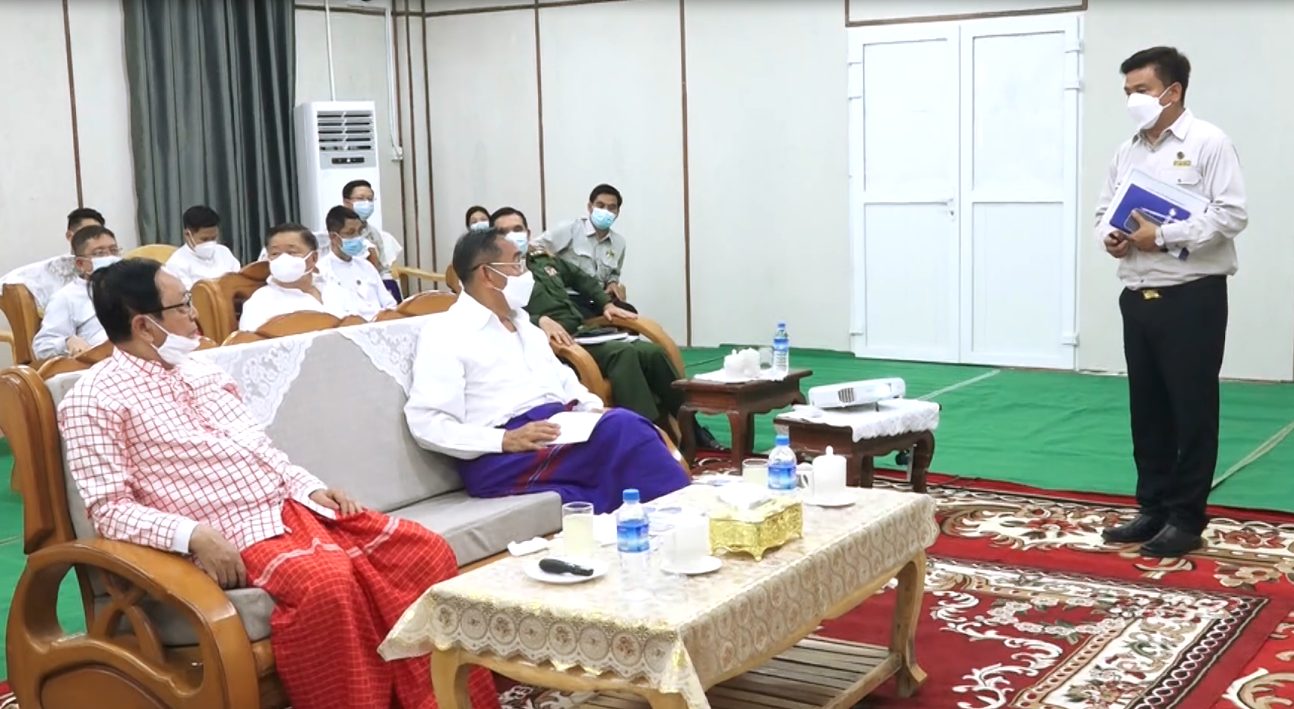 စီမံကိန်းရှင်းလင်းဆောင်တွင် တံတားဦးစီးဌာန အင်ဂျင်နီယာချုပ် (မြို့ပြ) ဦးကျော်စွာထွန်းက စီမံကိန်းဆိုင်ရာ ဆောင်ရွက်မှု များကို ရှင်းလင်းတင်ပြရာ နိုင်ငံတော်စီမံအုပ်ချုပ်ရေးကောင်စီအဖွဲ့ဝင်များက သိရှိလိုသည့် အချက်များကို မေးမြန်းဆွေးနွေးသည်။