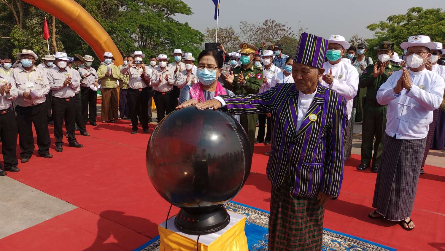 အခမ်းအနားသို့ နိုင်ငံတော်စီမံအုပ်ချုပ်ရေး ကောင်စီဝင်များဖြစ်ကြသည့် ဒေါ်အေးနုစိန်၊ ဦးမောင်းဟာ၊ ဆောက်လုပ်ရေးဝန်ကြီးဌာန၊ ပြည်ထောင်စုဝန်ကြီး ဦးရွှေလေး၊ ဧရာဝတီတိုင်းဒေသကြီး ဝန်ကြီးချုပ် ဦးတင်မောင်ဝင်း၊ အနောက်တောင်တိုင်းစစ်ဌာနချုပ် တိုင်းမှူး ဗိုလ်ချုပ် အောင်အောင်၊ ဧရာ၀တီတိုင်းဒေသကြီး အစိုးရအဖွဲ့ဝင်ဝန်ကြီးများ၊ စစ်ဘက်၊ နယ်ဘက်မှ ပုဂ္ဂိုလ်များ၊ ဆောက်လုပ်ရေးဝန်ကြီးဌာနမှ ဌာနကြီးမှူးများနှင့် တာဝန်ရှိသူများ၊ တိုင်း၊ ခရိုင်၊ မြို့နယ်အဆင့် ဌာနဆိုင်ရာ တာဝန်ရှိသူများ၊ လူမှုရေးအသင်းအဖွဲ့များမှ ပုဂ္ဂိုလ်များ၊ ရပ်မိ၊ ရပ်ဖများ၊ ဒေသခံ ပြည်သူများ၊ ဖိတ်ကြားထားသည့် ဧည့်သည်တော်များ၊ ဘင်ခရာအဖွဲ့၊ စည်တော်အကအဖွဲ့၊ တိုင်းရင်းသားရိုးရာ အကအဖွဲ့များ တက်ရောက်ကြသည်။