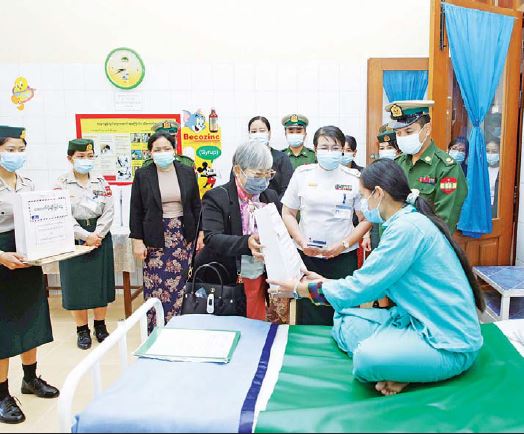 ထို့နောက် နိုင်ငံတော်စီမံအုပ်ချုပ်ရေးကောင်စီဒုတိယဥက္ကဋ္ဌ ဒုတိယတပ်မတော် ကာကွယ်ရေးဦးစီးချုပ် ကာကွယ်ရေးဦးစီးချုပ်(ကြည်း)သည် ဆေးရုံတွင်တာဝန်ထမ်း ဆောင်လျက်ရှိသည့် ကျန်းမာရေး ဝန်ထမ်းများအတွက် ချီးမြှင့်ငွေများကို ပေးအပ်ရာ ဆေးရုံတပ်မှူးက လက်ခံရယူခဲ့ကြောင်း သတင်းရရှိသည်။