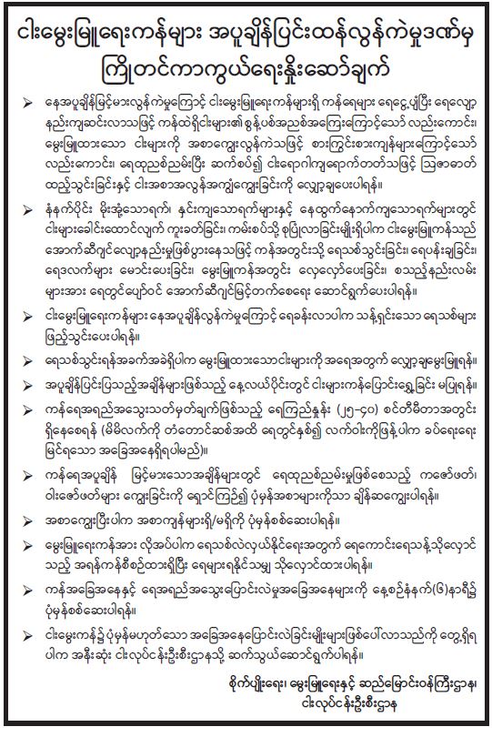 ဓာတ်သတ္တုဆိုင်ရာ လုပ်ငန်းများနှင့်စပ်လျဉ်း၍ ရှင်းလင်း