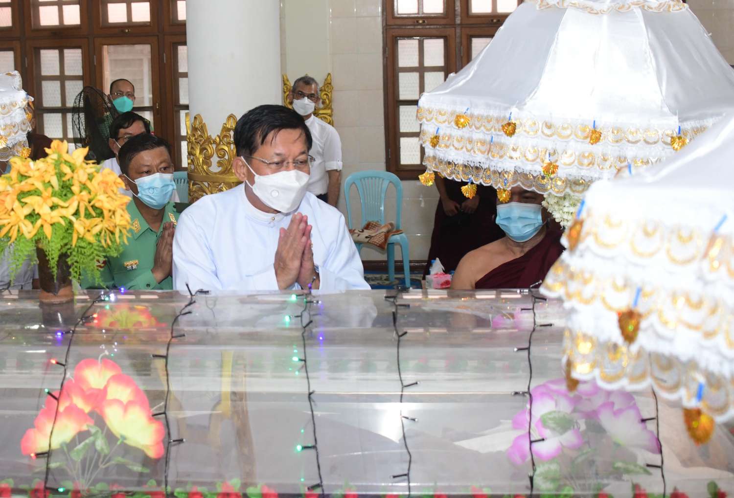 ထို့နောက် နိုင်ငံတော်စီမံအုပ်ချုပ်ရေးကောင်စီဥက္ကဋ္ဌ နိုင်ငံတော်ဝန်ကြီးချုပ်နှင့် အဖွဲ့ဝင်များသည် ဆရာတော်ဘုရားကြီး၏ ကြွင်းကျန်ရစ်သည့် ရုပ်ကလပ်တော်မြတ်အား ဖူးမြော်ကြည်ညိုပြီး အန္တိမအဂ္ဂိဈာပန ပူဇော်ပွဲအောင်မြင်စွာ ကျင်းပနိုင်ရေးအတွက် ရန်ကုန်တိုင်းဒေသကြီးဝန်ကြီးချုပ်နှင့် ရန်ကုန်တိုင်းစစ်ဌာနချုပ် တိုင်းမှူးတို့ကို လိုအပ် သည်များ မေးမြန်း၍လိုအပ်သည်များ မှာကြားဖြည့်ဆည်းဆောင်ရွက်ပေးသည်။
