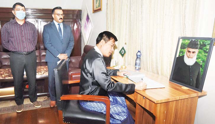 ပါကစ္စတန် အစ္စလာမ္မစ်သမ္မတနိုင်ငံ၏ သမ္မတဟောင်း H.E. Mr. Muhammad Rafiq Tarar သည် ၂၀၂၂ ခုနှစ် မတ် ၇ ရက်တွင် ကွယ်လွန်ခဲ့သည့်အတွက် နိုင်ငံခြားရေးဝန်ကြီးဌာန မဟာ ဗျူဟာလေ့လာရေးနှင့် လေ့ကျင့် ရေးဦးစီးဌာန ခေတ္တညွှန်ကြား ရေးမှူးချုပ် ဦးဇော်ဖြိုးဝင်းသည် ယနေ့ နံနက် ၁၁ နာရီခွဲတွင် ရန်ကုန်မြို့ ပြည်လမ်း အမှတ် (အေ-၄) သံတမန်ရပ်ကွက်ရှိ မြန်မာနိုင်ငံဆိုင်ရာ ပါကစ္စတန်နိုင်ငံသံရုံး၌ ဝမ်းနည်းခြင်းအထိမ်း အမှတ်စာအုပ်၌ လက်မှတ်ရေးထိုးသည်။