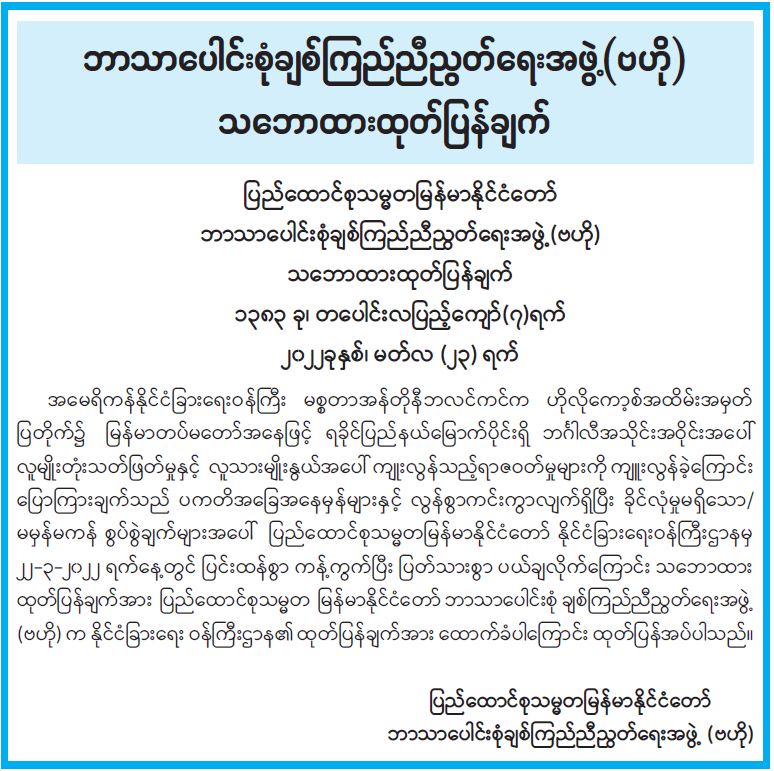 ဘာသာပေါင်းစုံ ချစ်ကြည်ညီညွတ်ရေးအဖွဲ့ (ဗဟို) သဘောထားထုတ်ပြန်ချက်