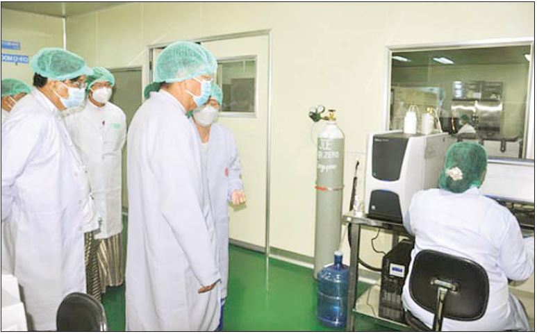 ယင်းနောက် ပြည်ထောင်စုဝန်ကြီး ဒေါက်တာ ချာလီသန်းနှင့် ဒေါက်တာ သက်ခိုင်ဝင်း၊ တရုတ်ပြည်သူ့ သမ္မတနိုင်ငံ သံအမတ်ကြီး မစ္စတာ ချန်းဟိုင်း၊ တိုင်းဒေသကြီး ဝန်ကြီးချုပ် ဦးစိုးသိန်း၊ တိုင်းမှူး ဗိုလ်ချုပ် ညွန့်ဝင်းဆွေနှင့် ဆေးဝန်ထမ်း ညွှန်ကြားရေးမှူးရုံး ညွှန်ကြားရေးမှူး ဗိုလ်ချုပ် ကိုကိုလွင် တို့က Myancopharm ကိုဗစ်-၁၉ ရောဂါ ကာကွယ်ဆေး စတင်ထုတ်လုပ်မှုနှင့် မိတ်ဆက်ခြင်း အခမ်း အနားကို ဖဲကြိုးဖြတ်ဖွင့်လှစ်ပေးကြသည်။