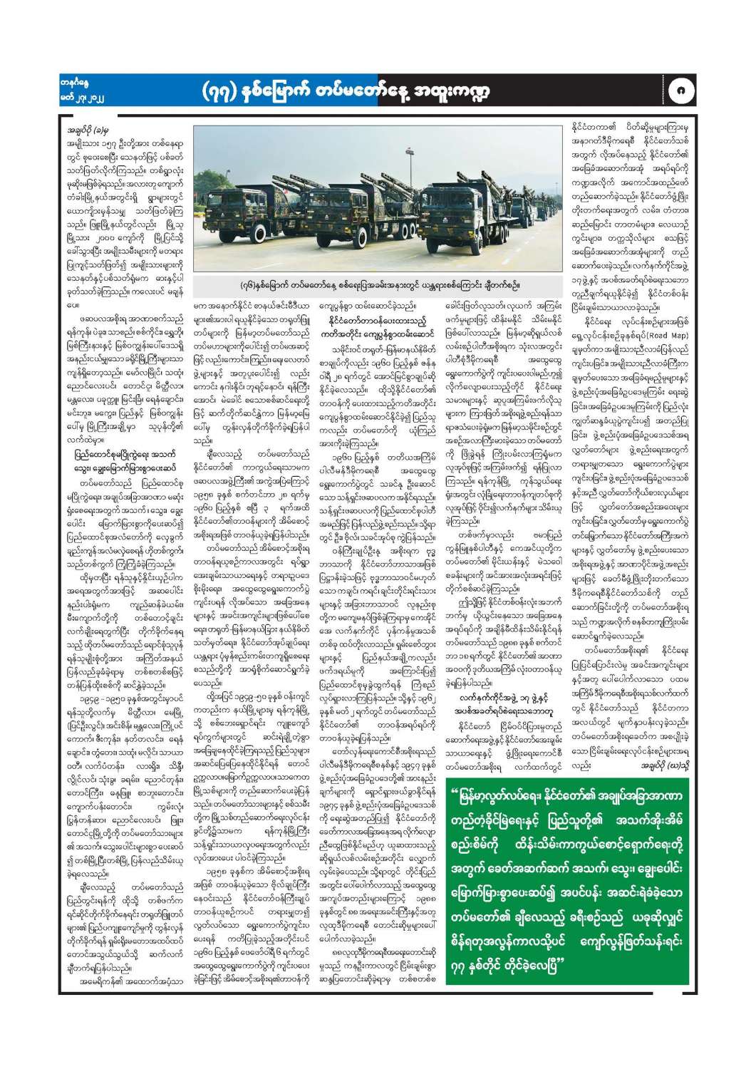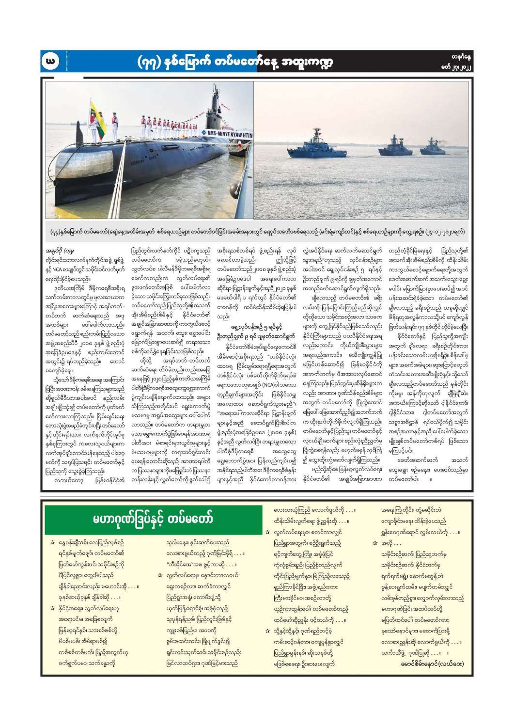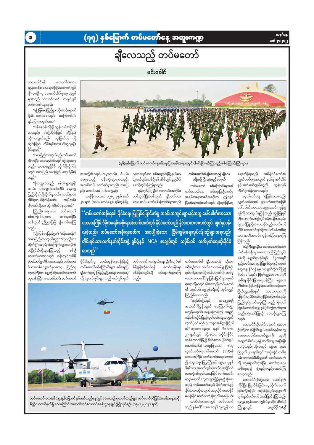 ၇၇ နှစ်မြောက် တပ်မတော်နေ့ အထူးကဏ္ဍ (၂၇-၃-၂၀၂၂) ရက်နေ့ မြန်မာ့အလင်းသတင်းစာ