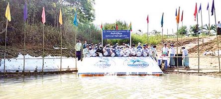 ဧရာဝတီတိုင်းဒေသကြီး ရေကြည်မြို့နယ်အတွင်း ငါးလုပ်ငန်းများ စဉ်ဆက်မပြတ် ဖွံ့ဖြိုးတိုးတက်စေရေး၊ ဂရန်အင်းများ၏ ငါးထုတ် လုပ်မှုတိုးတက်စေရေးအတွက် မတ် ၂၄ ရက်က သောင်ကြီးကျေးရွာ အုပ်စု၊ တက်ဆိပ်မြစ်ကျိုးအင်း၌ ငါးမျိုးစိုက်ထည့်သည်။