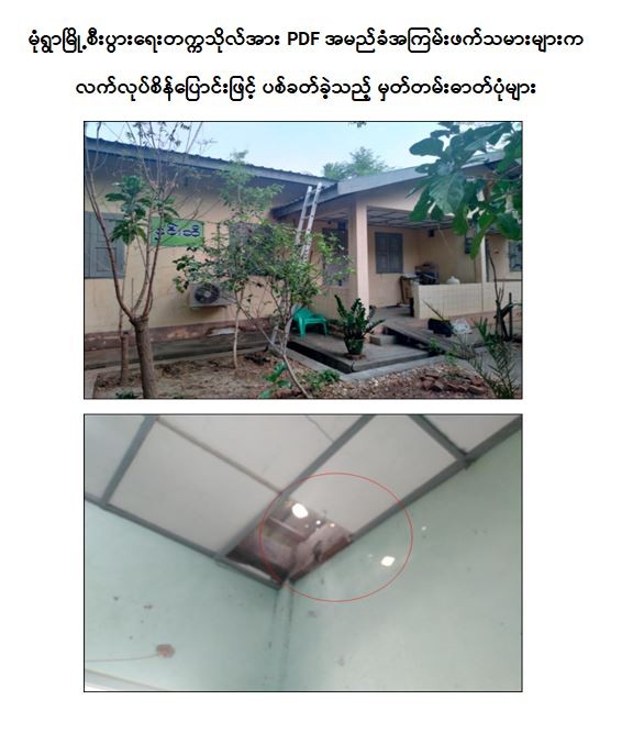 ထိုသို့ အကြမ်းဖက်လုပ်ရပ်များ ပြုလုပ်လျက်ရှိရာ မတ် ၂၇ ရက်နံနက် ၃ နာရီ ၁၅ မိနစ်တွင် စစ်ကိုင်းတိုင်းဒေသကြီး၊ မုံရွာမြို့၊ နန္ဒဝန်ရပ်ကွက်၊ နယ်မြေ (၆)ရှိ မုံရွာစီးပွားရေးတက္ကသိုလ်အား PDF အမည်ခံအကြမ်းဖက်သမား (စိစစ်ဆဲ)တို့က စီးပွားရေးတက္ကသိုလ်၏ အရှေ့ဘက်ကိုက် ၃၀၀ ခန့်အကွာမှ လက်လုပ်စိန်ပြောင်းဖြင့် ၃ ချက်ပစ်ခတ်ခဲ့ရာ နှင်းဆီအဆောင် အခန်းအမှတ်(၃) လူနေအိမ် အဆောက်အဦ၏ အမိုးနှင့်မျက်နှာကျက်တို့ ထိခိုက်ပျက်စီးခဲ့ကြောင်း သိရှိရသည်။
