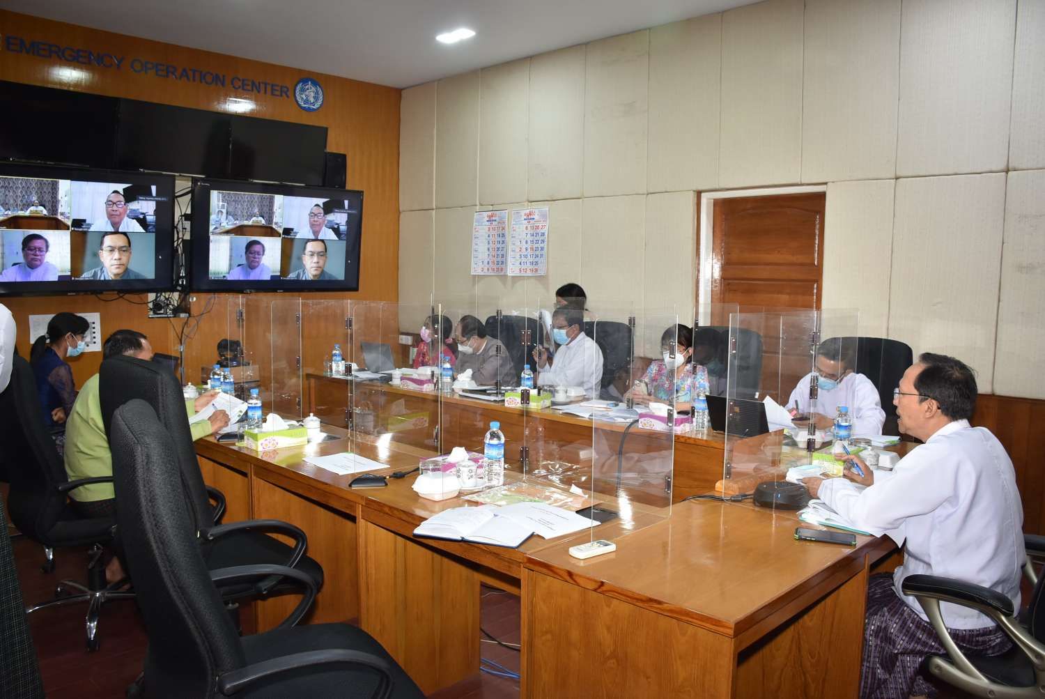 အစည်းအဝေးတွင် ပြည်ထောင်စုဝန်ကြီး၊ ပါမောက္ခ ဒေါက်တာ သက်ခိုင်ဝင်းက ပြည်ထောင်စု နယ်မြေ နေပြည်တော်၊ တိုင်းဒေသကြီး / ပြည်နယ် များတွင် ကိုဗစ်-၁၉ ရောဂါကာကွယ်ဆေးကို (၂၀၂၁)ခုနှစ် ၊ နှစ်ကုန်တွင် ရည်မှန်းလူဦး ရေ၏ (၅၀) ရာခိုင်နှုန်းကျော် ထိုးနှံပေးနိုင်ခဲ့ပြီး (၂၀၂၂)ခုနှစ်၊ ဧပြီလကုန် တွင်ရည်မှန်း လူဦးရေ၏ ရာနှုန်းပြည့်ထိုးနှံပြီးစီးနိုင်ရေးအတွက် အရှိန်အဟုန်မြှင့်တင် ဆောင်ရွက်လျက် ရှိပါကြောင်း၊ ကာကွယ်ဆေး လွှမ်းခြုံမှုအားကောင်းခဲ့၍ စတုတ္တလှိုင်း တွင် ကိုဗစ်-၁၉ ရောဂါ ဖြစ်ပွားမှု နှုန်းနှင့်သေဆုံးမှုလျော့နည်းခဲ့ခြင်းပြီး ဖြေလျှော့မှုများဖြစ်သည့် လေကြောင်းလိုင်းများ ပြန်လည် ဖွင့်လှစ်နိုင်ရေး၊ ရုပ်ရှင်ရုံများပြန်လည် ဖွင့်လှစ်နိုင်ရေးအတွက် စီမံဆောင်ရွက်လျက်ရှိပါကြောင်း စတုတ္တလှိုင်းအတွင်း ကိုဗစ်-၁၉ ရောဂါကြောင့် သေဆုံးရမှုများမှာ ကာကွယ်ဆေးအကြိမ် ပြည့်မထိုးနှံထားသူ အများစု ဖြစ်ပါကြောင်း။