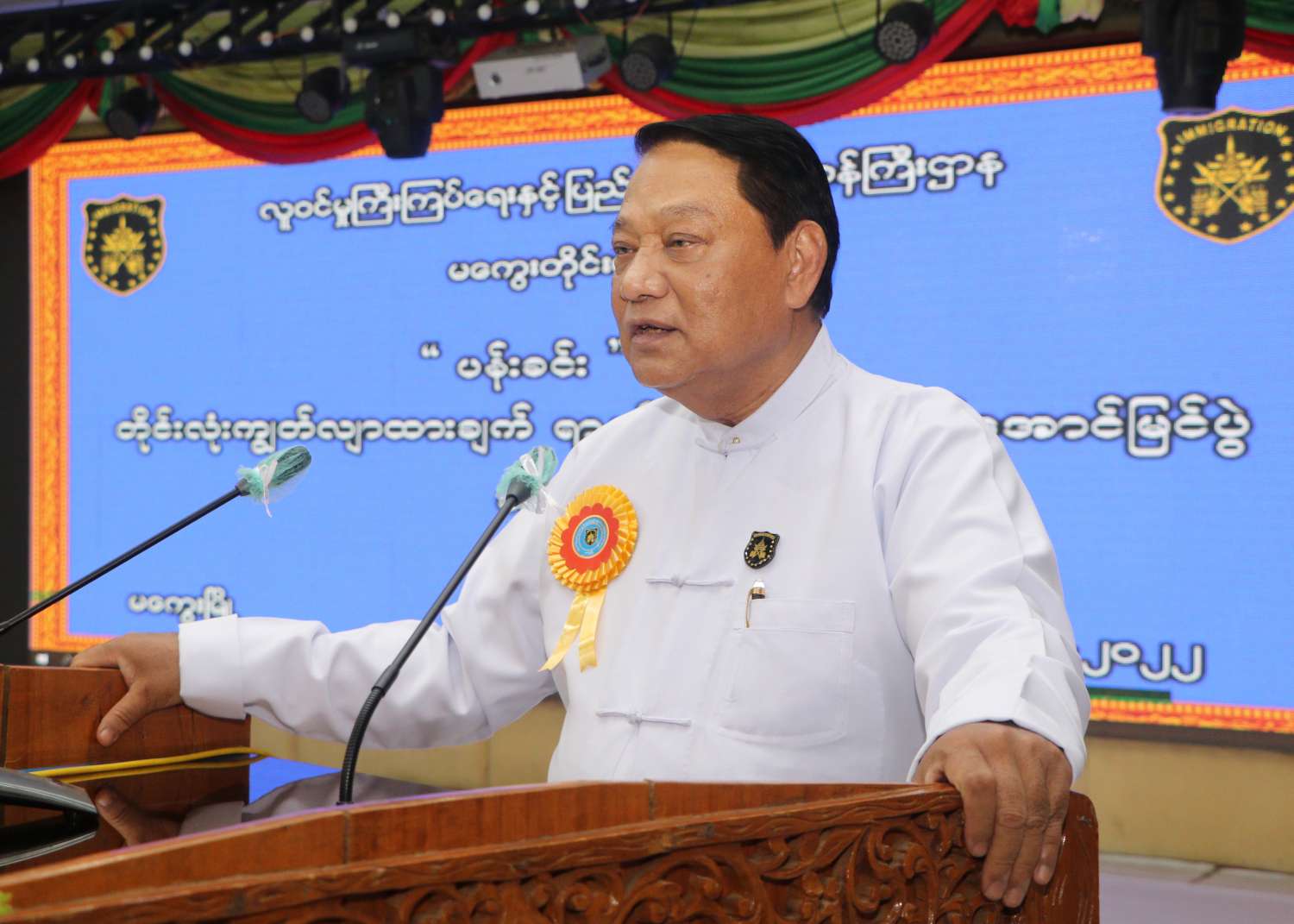 ရှေးဦးစွာ ပြည်ထောင်စုဝန်ကြီး ဦးခင်ရီက နောင်ကျင်းပမည့် ရွေးကောက်ပွဲများ၌ ဆန္ဒမဲပေးပိုင်ခွင့် ရှိသူအားလုံး ကိုင်ဆောင် သင့်သည့် ကတ်ပြားတစ်မျိုးမျိုး ကိုင်ဆောင်မဲပေးနိုင်ရေးအတွက် မိမိတို့ဝန်ကြီးဌာနမှ ပန်းခင်းစီမံချက်ဖြင့် နိုင်ငံတစ်ဝန်း ကွင်းဆင်းဆောင်ရွက်ပေးလျက်ရှိပါကြောင်း၊ ပန်းခင်း စီမံချက်သည် ၂၀၂၁ ခုနှစ်၊ မေ (၃)ရက်မှ ၂၀၂၂ ခုနှစ်၊ နိုဝင်ဘာ (၃)ရက်အထိ (၁၈) လကြာ သတ်မှတ်၍ တိုင်းဒေသကြီး/ ပြည်နယ်အလိုက် ဆောင်ရွက်ရန် အရေအတွက် လျာထားသတ်မှတ် ဆောင်ရွက်ခြင်း ဖြစ်ပါကြောင်း၊ ယင်းသို့ ဆောင်ရွက်ရာတွင်လည်း တိုင်းဒေသကြီး/ ပြည်နယ်အလိုက် ကိုဗစ်-၁၉ ကပ်ရောဂါ ကူးစက်ဖြစ်ပွားမှုအခြေအနေ၊ လုံခြုံရေးဆိုင်ရာ အဟန့်အတားများကြားမှ နည်းလမ်း ပေါင်းစုံဖြင့် သတ်မှတ်ကာလအတွင်း လျာထားချက်ပြည့်မီပြီးစီးအောင် ဆောင်ရွက်ကြရခြင်း ဖြစ်ပါကြောင်း၊ ပန်းခင်းစီမံချက် စတင်ချိန်မှ(၁၁)လတာကာလအတွင်း ပဲခူး၊ ဧရာဝတီ၊ နေပြည်တော်၊ မန္တလေးနှင့် တနင်္သာရီတိုင်းဒေသကြီးတို့သည် တိုင်းလုံးကျွတ်လျာထားချက် ရာနှုန်းပြည့် ပြီးမြောက် အောင်မြင် အောင်ဆောင်ရွက်နိုင်ခဲ့ပြီး မကွေးတိုင်းဒေသကြီးသည် နိုင်ငံသားစိစစ်ရေး ကတ်ပြား (၈၆၇၉၀) လျာထားရာ ယခုအထိ (၁၀၇၈၂၁)ကတ်၊ (၁၂၄ ဒသမ ၃) ရာခိုင်နှုန်း ဆောင်ရွက်ပြီးစီး ပြီဖြစ်သည့်အတွက် (၆) ခုမြောက် တိုင်းလုံးကျွတ်လျာထားချက် ပြီးမြောက်အောင်မြင်သည့် တိုင်းဒေသကြီးဖြစ်ပါကြောင်း၊ နိုင်ငံသားကတ်(မှတ်ပုံတင်)ကို ပြည်သူများ လွယ်လွယ်ကူကူ ရရှိကိုင်ဆောင်နိုင်ရေးအတွက် အစိုးရအဆက်ဆက် စီမံချက်များဖြင့် ဆောင်ရွက်ပေးခဲ့ကြသော် လည်း နိုင်ငံသားကတ်၏ အသုံးဝင်တန်ဖိုးကို သိရှိနားလည်ခြင်းမရှိသဖြင့် ရယူကိုင်ဆောင်ခြင်းမပြုဘဲ၊ ဒေသအာဏာပိုင် အဖွဲ့အစည်းများ၏ ထောက်ခံချက်များဖြင့် သွားလာလုပ်ကိုင်ဆောင်ရွက်မှုများ ရှိနေကြပါကြောင်း၊ ထို့ကြောင့် မိမိတို့အနေဖြင့် မိဘပြည်သူများသို့ အသိပေးကြေညာချက် ထုတ်ပြန်ကာ ဧပြီ (၁) ရက်မှစ၍ ခရီးသွားလာမှု၊ တည်းခိုနေထိုင်မှုနှင့် နိုင်ငံသားကတ် (မှတ်ပုံတင်)ဖြင့် ဆောင်ရွက်ရမည့် လုပ်ငန်းများတွင် ထောက်ခံစာဖြင့် ခွင့်မပြုတော့ဘဲ နိုင်ငံသားကတ် (မှတ်ပုံတင်)ဖြင့် ဆောင်ရွက်ကြရန်နှင့် သက်ဆိုင်ရာတာဝန်ရှိ သူများက စစ်ဆေးသည့်အခါ နိုင်ငံသားကတ်ရှိကြောင်း ပြသကြရန် ဖြစ်ပါကြောင်း၊ ယင်းကဲ့သို့ အသိပေးကြေညာရခြင်းမှာ နိုင်ငံသားအားလုံး နိုင်ငံသားကတ် (မှတ်ပုံတင်) ရရှိကိုင်ဆောင်စေလို သည့်အတွက် ကြောင့်ဖြစ်ပါကြောင်း၊ နိုင်ငံသားစိစစ်ရေး ကတ်ပြားသည် နိုင်ငံသားတစ်ဦး၏ လူမှုဘဝဆောင်ရွက်မှုတိုင်းတွင် မရှိမဖြစ်အရေး ပါသည့် ကတ်ပြားဖြစ်ပြီး နိုင်ငံတော်က ဥပဒေနှင့်အညီ အ