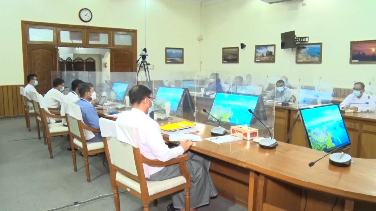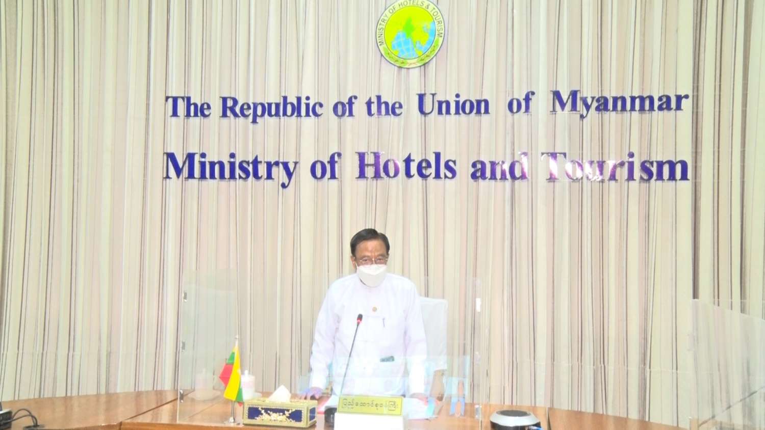 ဟိုတယ်နှင့်ခရီး သွားလာရေးဆိုင်ရာ နိုင်ငံအလိုက်သုတေသနအစီရင်ခံစာ (Country Report)အတွက် ပြင်ဆင်ဆောင်ရွက်ရေး ညှိနှိုင်း အစည်းအဝေးကို ယနေ့မွန်းလွဲပိုင်းတွင် နေပြည်တော်ရှိ အဆိုပါ ဝန်ကြီးဌာနအစည်းအဝေးခန်းမ၌ Video Conferencing စနစ်ဖြင့် ကျင်းပသည်။