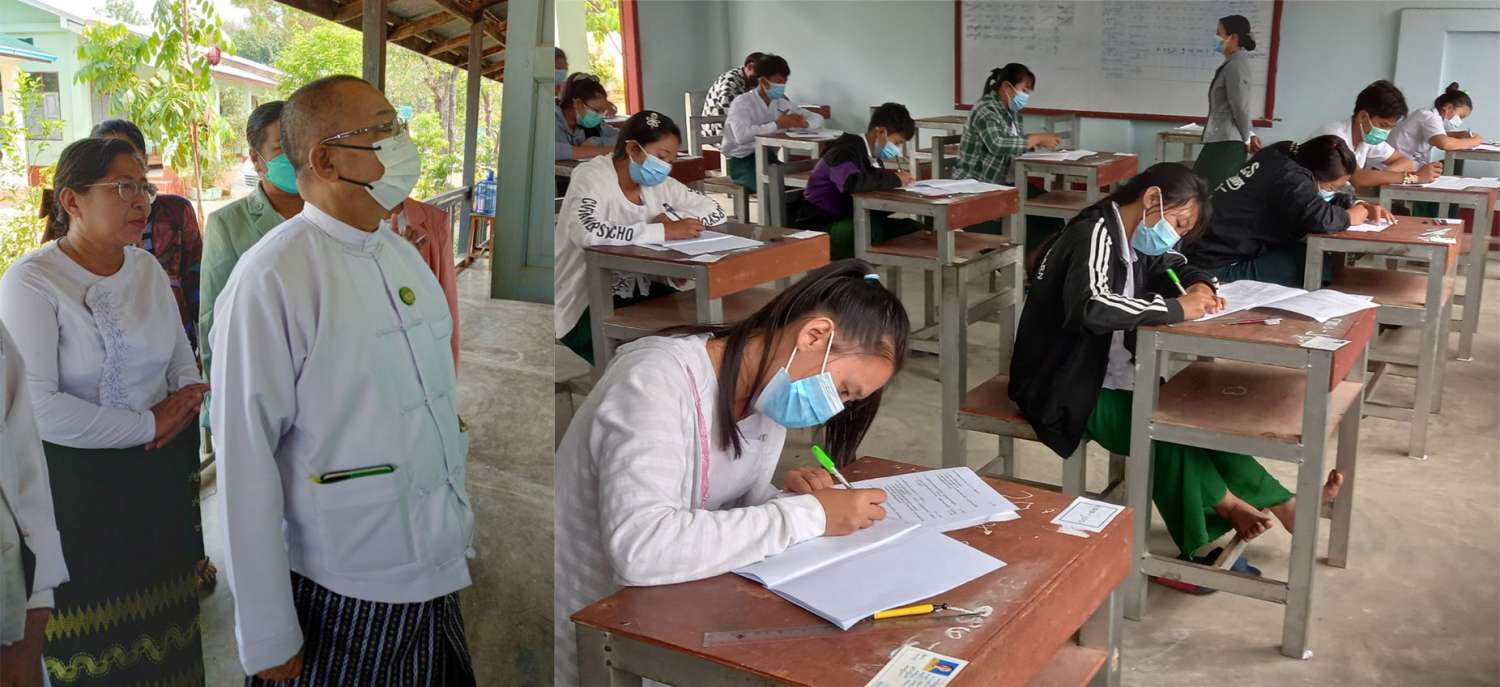 ပညာရေးဝန်ကြီးဌာန ဒုတိယဝန်ကြီးဦးဇော်ဝင်းသည် သက်ဆိုင်ရာတာဝန်ရှိသူများနှင့်အတူ ယနေ့နံနက်ပိုင်းတွင် ရှမ်းပြည်နယ် (အရှေ့ပိုင်း) မိုင်ဖြတ်မြို့ အခြေခံပညာအထက်တန်းကျောင်း စာစစ်ဌာနသို့ ရောက်ရှိပြီး ၂၀၂၂ ခုနှစ် တက္ကသိုလ်ဝင်စာမေးပွဲ ဆဋ္ဌမနေ့ ဇီဝဗေဒ/ ဘောဂဗေဒဘာသာရပ် ဖြေဆိုနေမှုများနှင့် စာမေးပွဲဆိုင်ရာလုပ်ငန်းများ ဆောင်ရွက်နေမှုတို့ကို လှည့်လည်ကြည့်ရှုအားပေးသည်။