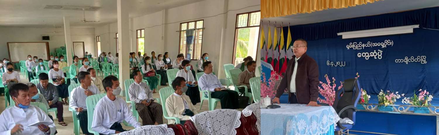 ထိုမှတစ်ဆင့် ဒုတိယဝန်ကြီးသည် တာချီလိတ်မြို့နယ် ဆန်ဆိုင်း အခြေခံပညာအထက်တန်း ကျောင်းတွင် ရှမ်းပြည်နယ်အရှေ့ပိုင်း ပြည်နယ် ရုံးခွဲပညာရေးမှူး၊ ခရိုင်/မြို့နယ်ပညာရေးမှူးများ၊ ကျောင်းအုပ်ကြီးများ၊ အခြေခံဆရာ ဆရာမများနှင့် တွေ့ဆုံ၍ ဆရာ ဆရာမများအနေဖြင့် ယခု ကျင်းပလျက်ရှိသည့် တက္ကသိုလ်ဝင်စာမေးပွဲ အောင်မြင်စွာပြီးမြောက်ရေးအတွက် မိမိတို့တာဝန်ကျရာ အခန်းကဏ္ဍကို ကျေပွန်အောင် ဝိုင်းဝန်းလက်တွဲဆောင်ရွက်ကြစေလိုကြောင်း၊ ကျောင်းသား ကျောင်းသူများကို နိုင်ငံချစ်စိတ်၊ မျိုးချစ်စိတ်ရှိသော၊ ယဉ်ကျေးလိမ္မာ၍ စည်းကမ်းလိုက်နာသော၊ အများနှင့်ပူးပေါင်း ဆောင်ရွက်တတ်သော လူတော်လူကောင်းများဖြစ်အောင် ပြုစုပျိုးထောင် မွေးထုတ်ပေးကြ စေလိုပါကြောင်း ပြောကြားသည်။