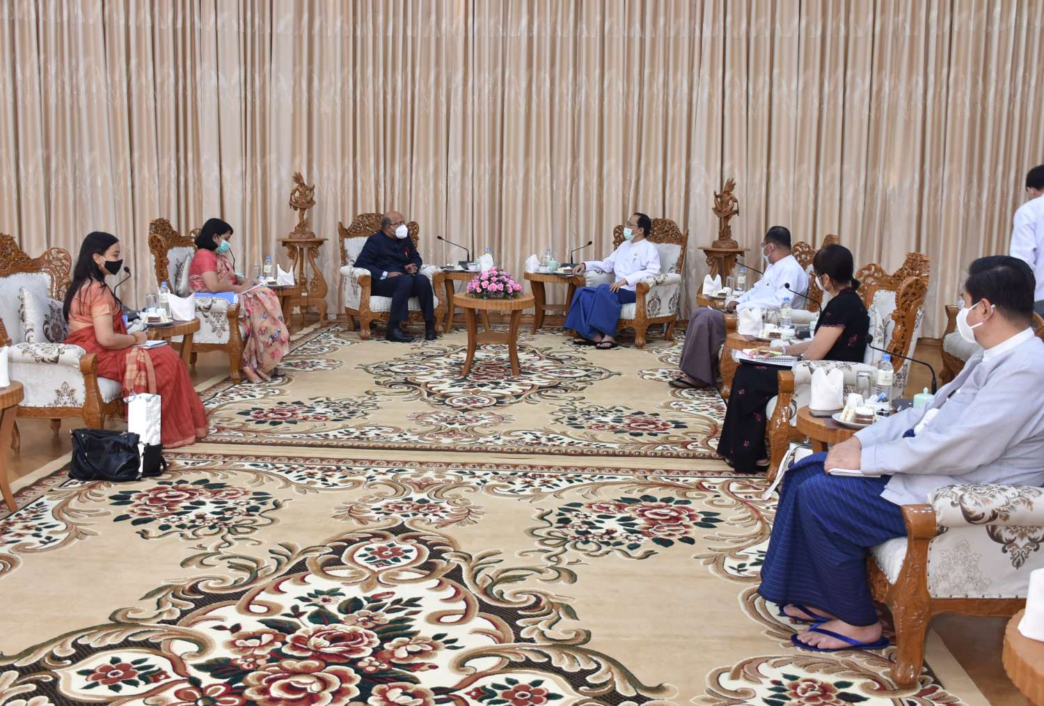 ကျန်းမာရေးဝန်ကြီးဌာန ပြည်ထောင်စုဝန်ကြီး ဒေါက်တာသက်ခိုင်ဝင်းသည် ယနေ့မွန်းလွဲပိုင်းတွင် မြန်မာနိုင်ငံဆိုင်ရာ အိန္ဒိယသံအမတ်ကြီး မစ္စတာ ဗီနေးကူးမား ဦးဆောင်သည့် ကိုယ်စားလှယ်အဖွဲ့အား အဆိုပါဝန်ကြီးဌာနဧည့်ခန်းမ၌ လက်ခံတွေ့ဆုံသည်။