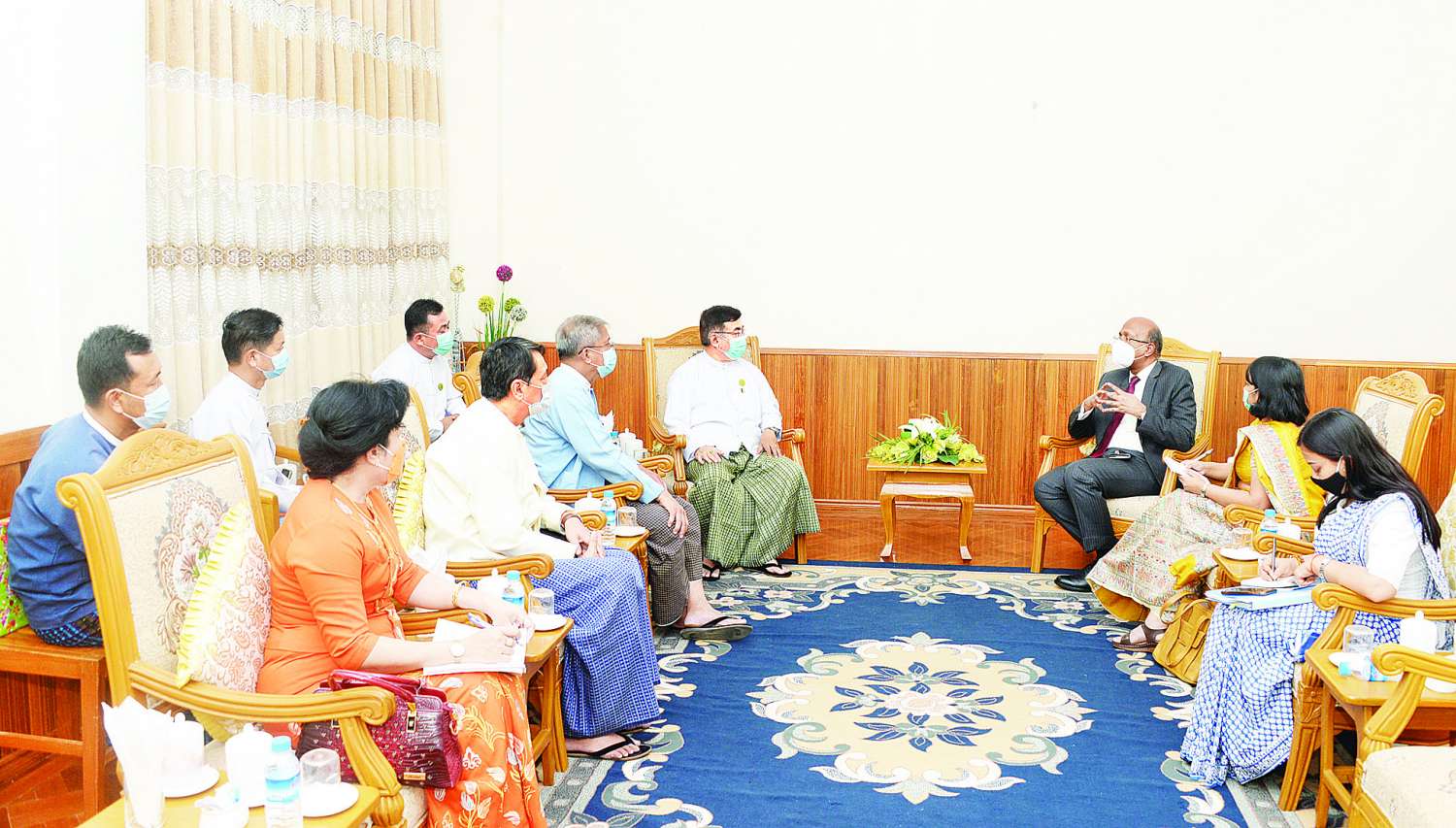 ပညာရေးဝန်ကြီးဌာန ပြည်ထောင်စုဝန်ကြီး ဒေါက်တာညွန့်ဖေသည် မြန်မာနိုင်ငံဆိုင်ရာ အိန္ဒိယ နိုင်ငံ သံအမတ်ကြီး မစ္စတာ ဗီနေးကူးမား ကို ယနေ့ မွန်းလွဲ ၃နာရီက ပညာရေးဝန်ကြီးဌာန ဝန်ကြီးရုံး ဧည့်ခန်းမ၌ လက်ခံတွေ့ဆုံသည်။