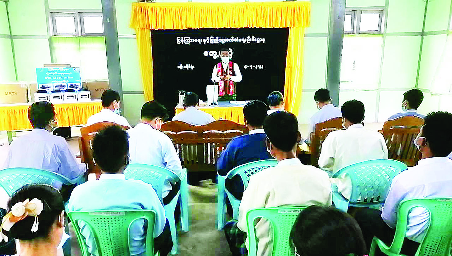 ပြန်ကြားရေးဝန်ကြီးဌာန ဒုတိယဝန်ကြီး ဦးရဲတင့်သည် ဧပြီ ၆ ရက် နံနက်ပိုင်းက ခန္တီးခရိုင် ပြန်ကြားရေးနှင့် ပြည်သူ့ဆက်ဆံရေးဦးစီးဌာနရုံး၌ အခြေချ စစ်ဗျူဟာမှူး၊ ခရိုင်အုပ်ချုပ်ရေး မှူးနှင့် နာဂကိုယ်ပိုင်အုပ်ချုပ်ခွင့်ရဒေသ အတွင်းရေးမှူးတို့နှင့် တွေ့ဆုံ၍ နယ်မြေတည်ငြိမ် အေးချမ်းရေးနှင့် ဒေသဖွံ့ဖြိုးရေး ကိစ္စများတွင် မိမိတို့ပြန်ကြားရေးဝန်ကြီးဌာန ဝန်ထမ်းများနှင့် ပူးပေါင်းဆောင်ရွက်ရေး ဆွေးနွေး ညှိနှိုင်းမှာကြားပြီး ဒေသခံတိုင်းရင်းသား ပြည်သူများနှင့် တပ်မတော်မိသားစုများ ရုပ်မြင်သံကြား ထပ်ဆင့်ထုတ်လွှင့်မှု အစီအစဉ်များကို ဖမ်းယူကြည့်ရှု နိုင်ရန်အတွက် ပြန်ကြားရေးဝန်ကြီးဌာနက လှူဒါန်း သော DVB T2 Set top box အလုံး ၃၀၀ ကို ပေးအပ်ရာ စစ်ဗျူဟာမှူးနှင့် တာဝန်ရှိသူ များက လက်ခံရယူသည်။