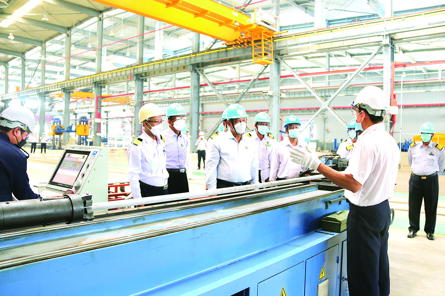 ယင်းနောက် ပြည်ထောင်စုဝန်ကြီးနှင့် အဖွဲ့သည် စက်ရုံ၌ တပ်ဆင်ထားသည့် စက်ပစ္စည်းကိရိယာများ ထိန်းသိမ်းထားရှိမှု၊ အသုံးချဆောင်ရွက်နေမှု၊ မြင်းကောင်ရေ (၁၂၀၀) စက်ခေါင်းသစ်များ တပ်ဆင် ထုတ်လုပ်နိုင်ရေး ဆောင်ရွက်နေမှု၊ အသုံးပြုနေဆဲ စက်ခေါင်းအချို့ ပြုပြင်မွမ်းမံပြင်ဆင်ပေးမှုလုပ်ငန်း တို့ကို လှည့်လည်ကြည့်ရှုစစ်ဆေးကာ လိုအပ်သည်များ မှာကြားသည်။