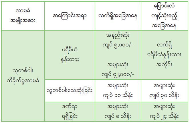 လက်ရှိ အာဆီယံနိုင်ငံများ၏ သူတစ်ပါးထိခိုက်မှုအာမခံ နစ်နာကြေးပေးချေမှုနှုန်းထားနှင့် ကိုက်ညီ စေရန်နှင့် စက်တပ်ယာဉ်ထိခိုက်မှုကြောင့် နစ်နာခဲ့ရသော ပြည်သူများအား တစ်စုံတစ်ရာ အထောက်အပံ့ ရရှိစေနိုင်ရန်အတွက် မြန်မာ့အာမခံလုပ်ငန်းအနေဖြင့် အကျိုးခံစားခွင့်(နစ်နာကြေး) နှုန်းထားများကို ဘဏ္ဍာရေးနှစ် အစဖြစ်သော (၁-၄-၂၀၂၂)ရက်နေ့မှစတင်ပြီး အောက်ပါအတိုင်း ပြောင်းလဲပြင်ဆင်ပေးလျော် သွားမည် ဖြစ်ပါသည်။