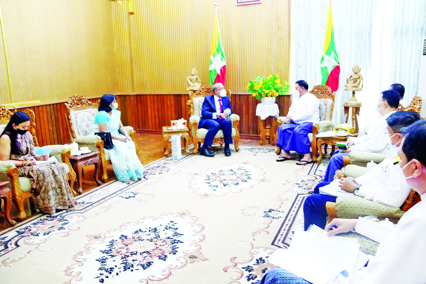 နိုင်ငံတော်စီမံအုပ်ချုပ်ရေးကောင်စီဝင် ပို့ဆောင်ရေးနှင့် ဆက်သွယ်ရေးဝန်ကြီးဌာန ပြည်ထောင်စုဝန်ကြီး ဗိုလ်ချုပ်ကြီး တင်အောင်စန်းသည် အိန္ဒိယနိုင်ငံ သံအမတ်ကြီး မစ္စတာဗီနေးကူးမားကို ယနေ့ မွန်းလွဲ ၂ နာရီက ပို့ဆောင်ရေးနှင့် ဆက်သွယ်ရေး ဝန်ကြီးဌာန ရုံးအမှတ် (၅) ၌ လက်ခံတွေ့ဆုံသည်။