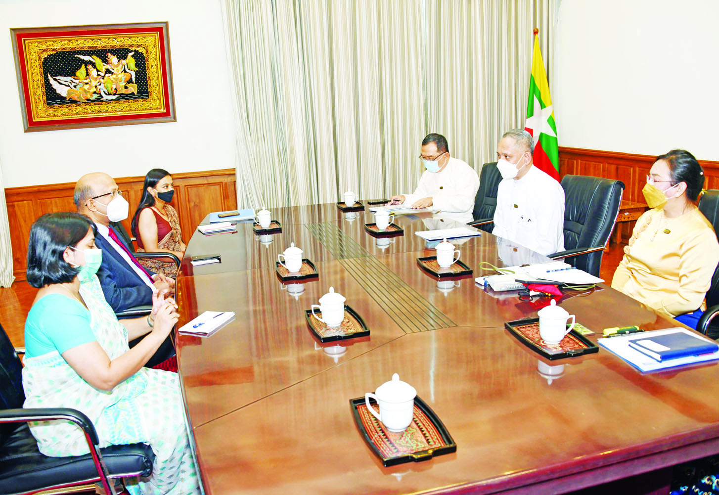 ရင်းနှီးမြှုပ်နှံမှုနှင့် နိုင်ငံခြားစီးပွား ဆက်သွယ်ရေးဝန်ကြီးဌာန ပြည်ထောင်စုဝန်ကြီး ဦးအောင်နိုင်ဦး သည် မြန်မာနိုင်ငံဆိုင်ရာ အိန္ဒိယနိုင်ငံ သံအမတ်ကြီး မစ္စတာ ဗီနေးကူးမားကို ယနေ့နံနက်ပိုင်းတွင် ရင်းနှီးမြှုပ်နှံမှုနှင့် နိုင်ငံခြားစီးပွားဆက်သွယ်ရေးဝန်ကြီးဌာနရှိ ပြည်ထောင်စုဝန်ကြီး ဧည့်ခန်းမ၌ လက်ခံတွေ့ဆုံသည်။