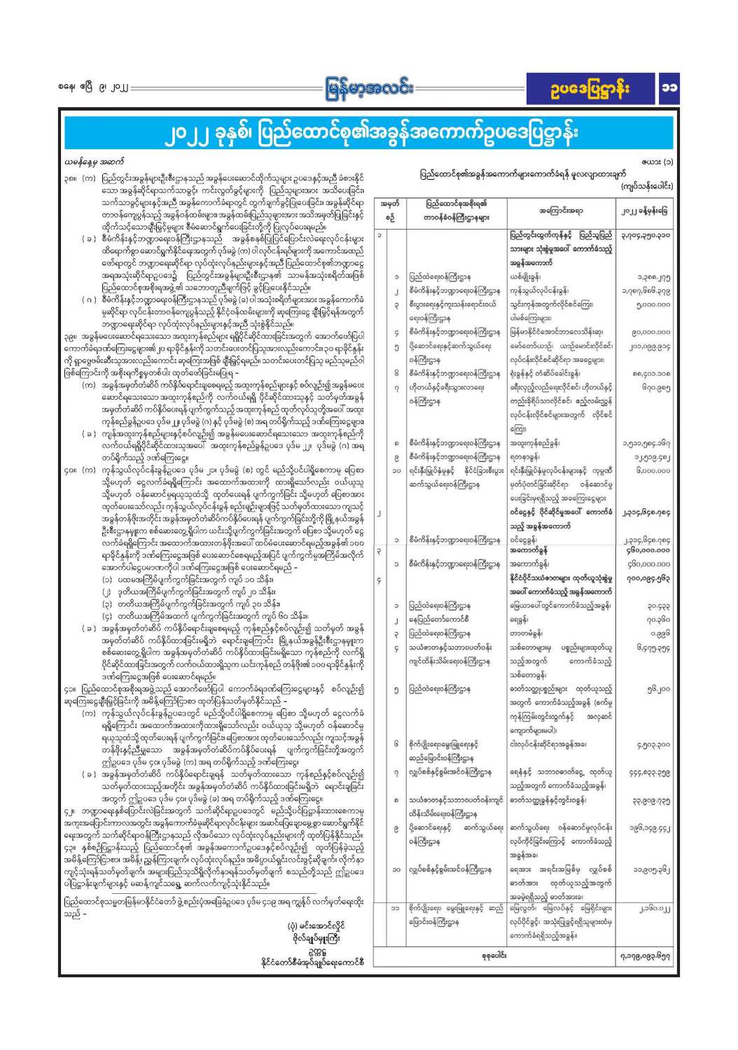၂၀၂၂ ခုနှစ်၊ ပြည်ထောင်စု၏ အခွန်အကောက်ဥပဒေပြဋ္ဌာန်း