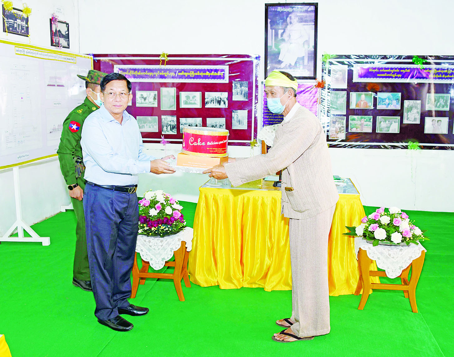 ထို့နောက် နိုင်ငံတော်စီမံအုပ်ချုပ်ရေးကောင်စီဥက္ကဋ္ဌနိုင်ငံတော်ဝန်ကြီးချုပ်က သိန်းနီမြို့ဌာန ဆိုင်ရာ များနှင့် ရပ်မိရပ်ဖများအတွက် စားသောက်ဖွယ်ရာပစ္စည်းများကိုပေးအပ်ရာ မြို့မိမြို့ဖ ဦးစိုင်း မျိုးညွန့်က လက်ခံရယူသည်။