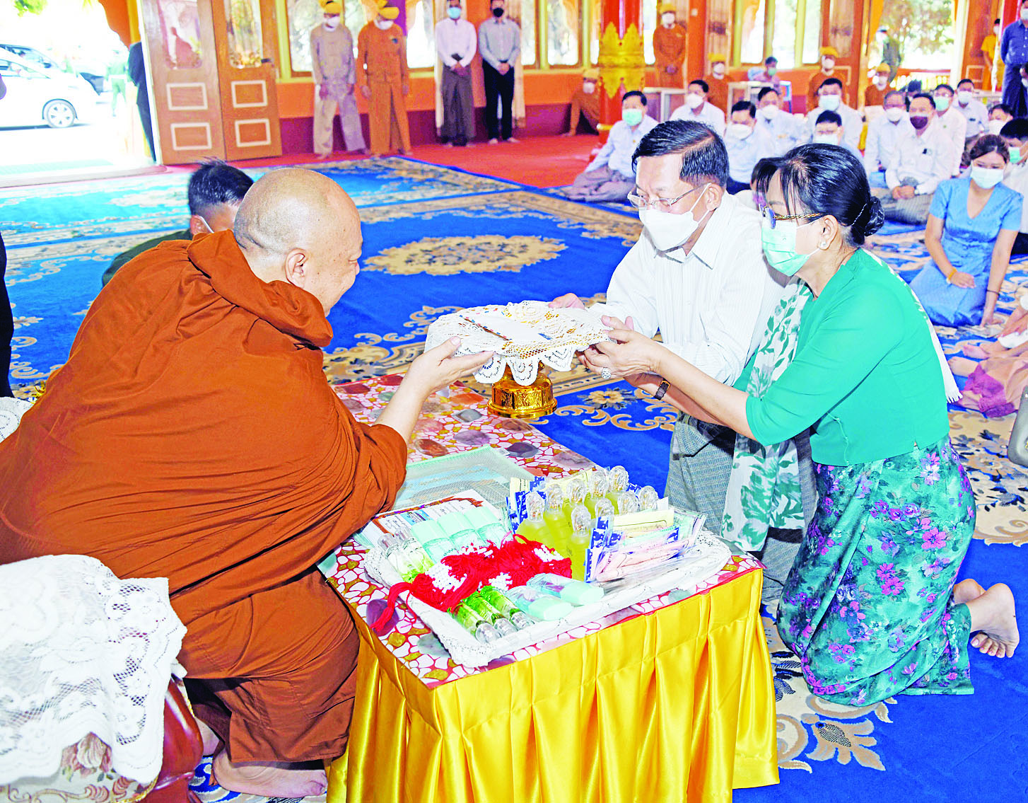 ဦးစွာ ဆရာတော်ကြီး၏ ကျန်းမာရေးဆိုင်ရာ များနှင့် ဘာသာရေးဆိုင်ရာတို့ကို မေးမြန်းလျှောက် ထားပြီး လှူဖွယ်ပစ္စည်းများ ဆက်ကပ်လှူဒါန်း သည်။ ထို့နောက် သီရိရတနာဆွမ်းစားကျောင်းဆောင် တော်အတွင်း၌ မန်ဆူရှမ်းကျောင်းတိုက်ရှိ စာသင် သားသံဃာတော်အပါး ၁၀၀ နှင့် မန်ဆူရှမ်းကျောင်း တိုက်ဆရာတော်ကြီးအမှူးပြုသည့်သံဃာတော်များအား ဆွမ်းလောင်းလှူကာနေ့ဆွမ်းဆက်ကပ် လှူဒါန်းခဲ့ကြောင်း သတင်းရရှိသည်။