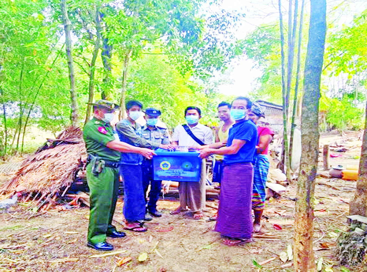 ထိုသို့ ဆောင်ရွက်ပေးနေမှုများကို ခရိုင်/မြို့နယ်စီမံအုပ်ချုပ် ရေးအဖွဲ့ဥက္ကဋ္ဌနှင့် တာဝန်ရှိသူများက သွားရောက်ကြည့်ရှု၍ လေဘေးသင့်ပြည်သူများအား တွေ့ဆုံအားပေးကာ လူမှုဝန်ထမ်းကယ်ဆယ်ရေးနှင့် ပြန်လည်နေရာချထားရေးဝန်ကြီးဌာန၊ သဘာဝဘေးအန္တရာယ်ဆိုင်ရာ စီမံခန့်ခွဲမှုဦးစီးဌာနမှ ထောက်ပံ့သော ကယ်ဆယ်ရေးပစ္စည်း ၁၈ မျိုးပါ ခြောက်ပုံး၊ ထောက်ပံ့ငွေများ၊ ဆန်၊ စားသောက် ဖွယ်ရာများနှင့် ကိုဗစ်-၁၉ ကာကွယ်ရေး အထောက်အကူပြုပစ္စည်းများကို ထောက်ပံ့ပေးအပ်ခဲ့ ကြောင်းသိရသည်။