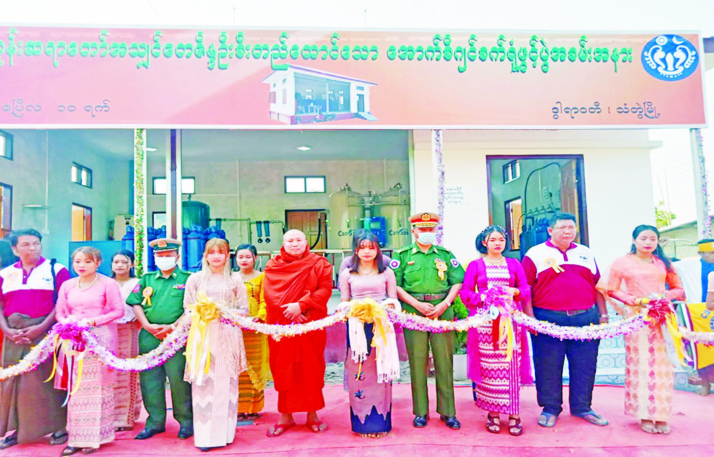 ဦးစွာ ပရဟိတသိမ်ကုန်း ကျောင်းတိုက် ဆရာတော်၊ တိုင်းစစ်ဌာနချုပ်မှတာဝန်ရှိသူများ၊ အောက်ဆီဂျင်စက်ရုံ ဖြစ်မြောက်ရေး အဖွဲ့ဥက္ကဋ္ဌနှင့်အလှူရှင်များ ကအောက်ဆီဂျင်စက်ရုံကို ဖဲကြိုးဖြတ်ဖွင့်လှစ်ပေးကြပြီး အောက်ဆီဂျင်စက်ရုံဖြစ်မြောက်ရေးအဖွဲ့ဥက္ကဋ္ဌက အောက်ဆီဂျင်စက်ရုံဖြစ်ပေါ်လာရခြင်း နှင့်ပတ်သက်၍ ရှင်းလင်းပြောကြားသည်။