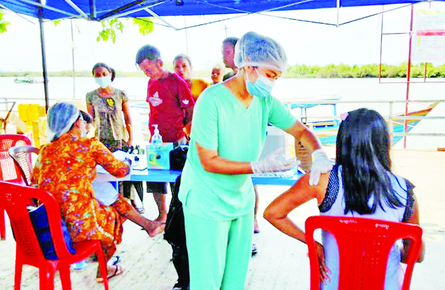 ထိုသို့ ဆောင်ရွက်လျက်ရှိရာ ယနေ့တွင်ဧရာဝတီတိုင်းဒေသ ကြီးအတွင်းရှိ မြို့နယ် ၂၆ မြို့နယ် ၌ ဒေသခံပြည်သူ ၄၀၆၅၆ ဦး၊ ရခိုင် ပြည်နယ်အတွင်းရှိ မြို့နယ် ၁၁မြို့နယ်၌ဒေသခံပြည်သူ ၁၃၆၁၀၊ မန္တလေးတိုင်းဒေသကြီးအတွင်းရှိခရိုင်ခုနစ်ခုမှဒေသခံ ပြည်သူ ၇၄၂၈ ဦးနှင့် ပဲခူးတိုင်းဒေသကြီး တောင်ငူမြို့နှင့်ထန်းတပင်မြို့နယ်တို့၌ ဒေသခံပြည်သူ ၂၅၈ ဦးတို့ကို တပ်မတော်မှ ဆေးအဖွဲ့များက ပြည်သူ့ ဆေးရုံများမှ ဆရာဝန်များ၊ သက်ဆိုင်ရာကျန်းမာရေး ဝန်ထမ်းများ၊ စေတနာ့ဝန်ထမ်းများနှင့် ပူးပေါင်း၍ ကိုဗစ်-၁၉ ရောဂါကာကွယ်ဆေးထိုးနှံပေးခြင်းများ ဆောင်ရွက်ပေးသည်။