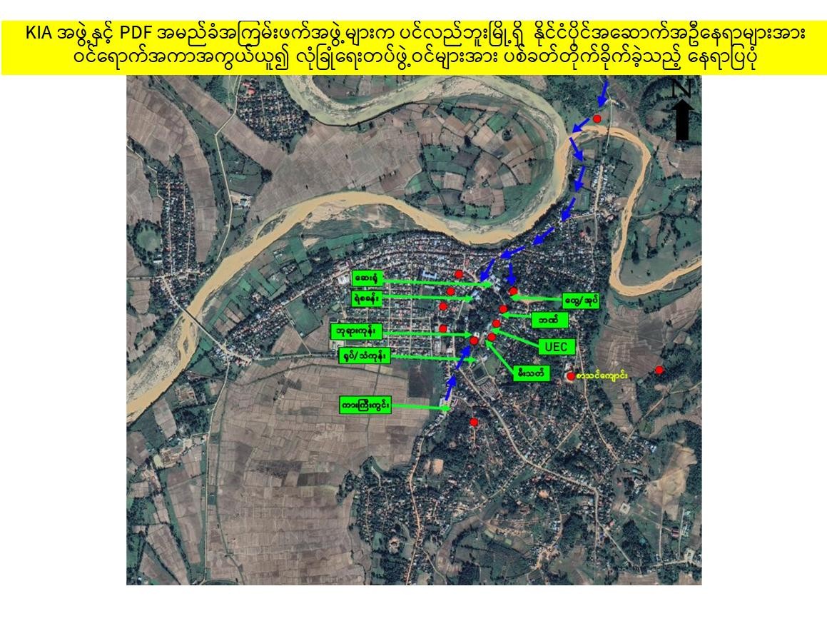 ပင်လည်ဘူးမြို့နယ်အတွင်း၌ KIA အဖွဲ့နှင့် PDF အမည်ခံ အကြမ်းဖက်အဖွဲ့တို့ အများပြည်သူပိုင် အဆောက်အဦနှင့် လူနေအိမ်များအား အကာအကွယ်ယူ၍ လုံခြုံရေး တပ်ဖွဲ့များအား ပစ်ခတ် တိုက်ခိုက်လာသဖြင့် လုံခြုံရေးတပ်ဖွဲ့ဝင်များက တိုက်ခိုက်ချေမှုန်း