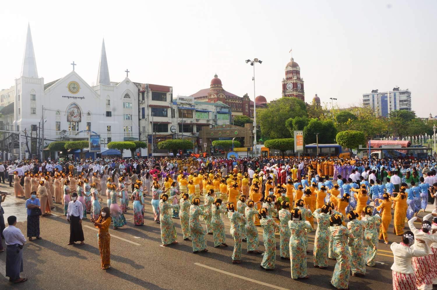 ယင်းနောက်အခမ်းအနားကို ရန်ကုန်တိုင်းဒေသကြီး ဝန်ကြီးချုပ် ဦးစိုးသိန်း၊ ရန်ကုန်တိုင်းစစ်ဌာနချုပ် တိုင်းမှူး ဗိုလ်ချုပ်ညွှန့်ဝင်းဆွေနှင့် ရန်ကုန်မြို့တော်ဝန် ဦးဗိုလ်ဌေးတို့က ဖဲကြိုးဖြတ် ဖွင့်လှစ်ပေးပြီး သင်္ကြန်အကပြိုင်ပွဲများ၊ ရုပ်ရှင်အနုပညာရှင်များဖြင့် ဖွဲ့စည်းထားသော အမေများ ယိမ်းအကအဖွဲ့၊ နိုင်ငံကျော်တေးသံရှင်များက ဖျော်ဖြေကြရာ တိုင်းဒေသကြီးအစိုးရအဖွဲ့မှ အမေများ ယိမ်းအဖွဲ့အား ဂုဏ်ပြုဆုငွေများ ချီးမြှင့်ပေးအပ်ခဲ့ကြောင်း သိရသည်။