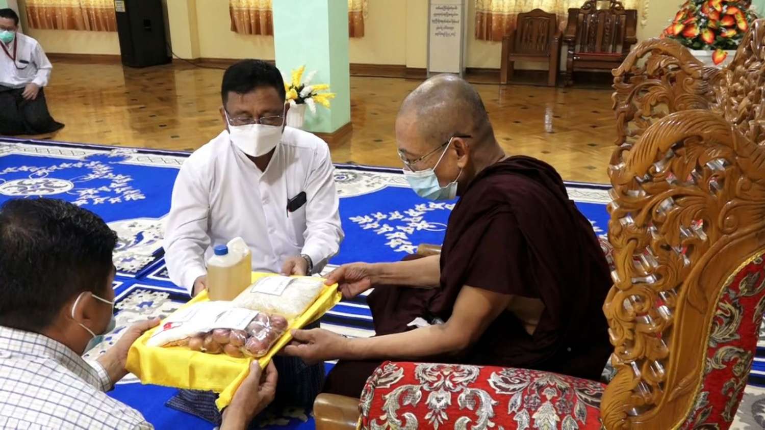 မွန်ပြည်နယ် ဝန်ကြီးချုပ် ဦး​ဇော်လင်းထွန်း အတာသင်္ကြန် နှစ်သစ်မင်္ဂလာကာလတွင် သံဃာ​တော်များအတွက် ဆန်၊ ဆီ၊ ဆား ကြက်သွန်များ​ ပေးအပ်လှူဒါန်း