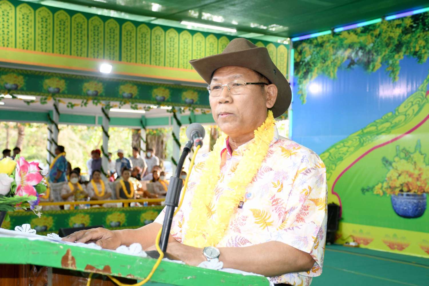 ရှေးဦးစွာ ရခိုင်ပြည်နယ်ဝန်ကြီးချုပ် ဒေါက်တာ အောင်ကျော်မင်းက နှစ်သစ်ကူးဆုတောင်း နှုတ်ခွန်းဆက်စကားပြောကြားသည်။ ထို့နောက် နိုင်ငံတော်စီမံအုပ်ချုပ်ရေးကောင်စီအဖွဲ့ဝင် ဒေါ်အေးနုစိန်၊ ရခိုင်ပြည်နယ်ဝန်ကြီးချုပ် ဒေါက်တာ အောင်ကျော်မင်း၊ အနောက်ပိုင်းတိုင်း စစ်ဌာနချုပ် တိုင်းမှူးနှင့် တာဝန်ရှိသူများက မဟာသင်္ကြန်ပွဲတော် ဗဟိုမဏ္ဍပ်အားဖဲကြိုးဖြတ်ဖွင့်လှစ်ပေးကြသည်။ ယင်းနောက် တေးသံရှင် ကိုထွန်းထွန်း၊ ကိုရဲနှင့် ယိမ်းအဖွဲ့တို့က နှစ်သစ်ကူးဆုတောင်း၊ မန်းတောင်ရိပ်ခို တေးသီချင်းများဖြင့် သီဆိုကပြဖျော်ဖြေကြရာ နိုင်ငံတော်စီမံအုပ်ချုပ်ရေးကောင်စီအဖွဲ့ဝင်၊ ပြည်နယ်ဝန်ကြီး ချုပ်နှင့် တာဝန်ရှိသူများက အတာရေများဖြင့် ပက်ဖျန်းပေးကြသည်။